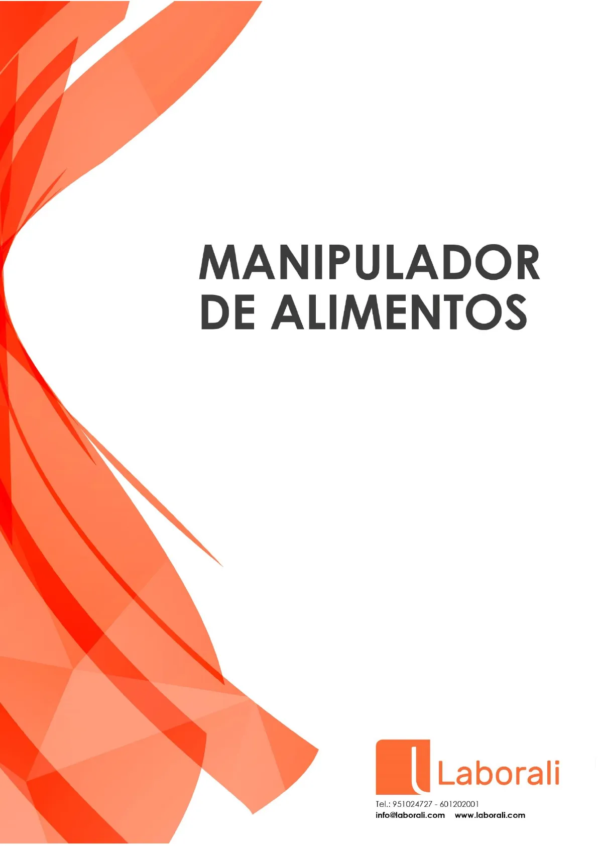 Documento de Laborali sobre Manipulador de Alimentos. El Pdf, un manual de formación profesional, aborda la manipulación de alimentos, infecciones bacterianas, enfermedades transmitidas por alimentos y prácticas de higiene, incluyendo información actualizada sobre el COVID-19 en seguridad alimentaria.