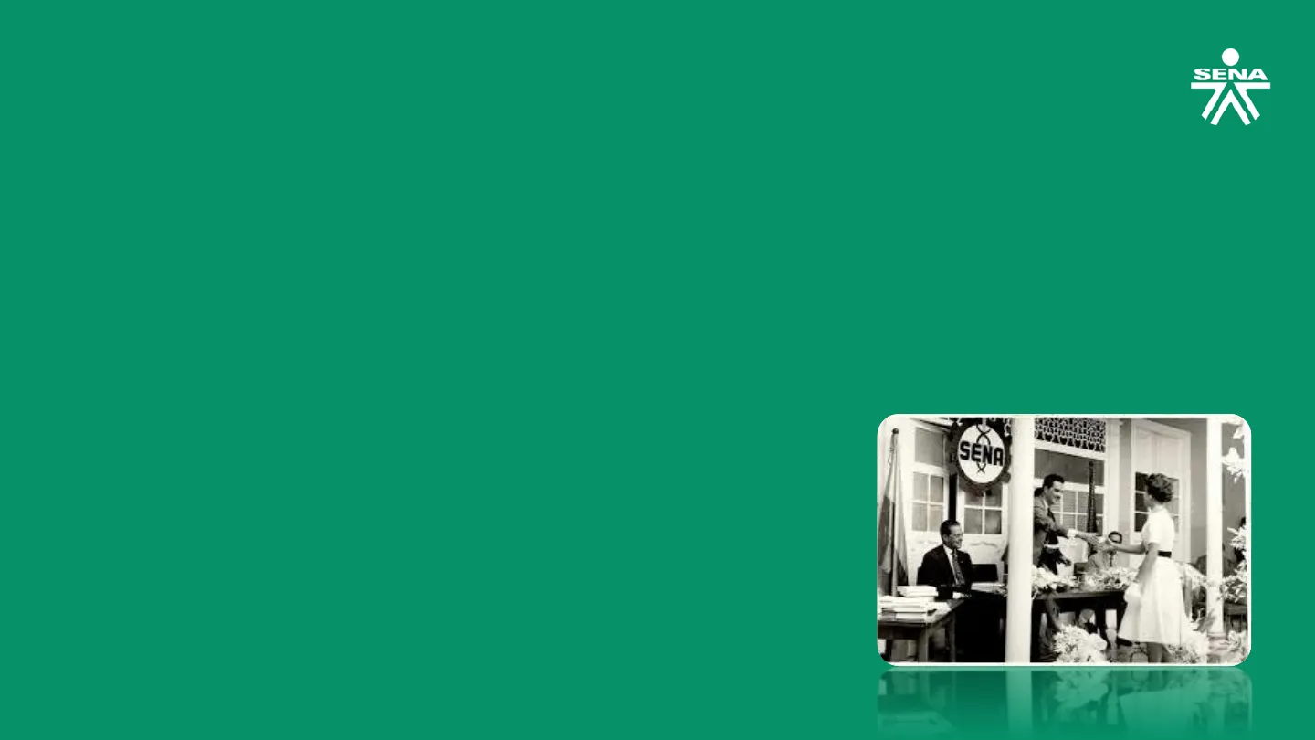 SENA CONOCIENDO AL SERVICIO NACIONAL DE APRENDIZAJE- SENA Tema 1: Historia de nuestra Institución ¿Quiénes somos? Tema 2: Misión, Visión y Valores Tema 3 : Identidad Corporativa Tema 4: Estructura Organizacional Tema 5: Estatuto de Formación Profesional Integral SENA Tema 6: Niveles y etapas de la formación SENA Tema 7: Estrategia metodológicaSENA Tema 1: Historia de nuestra Institución ¿Quiénes somos? SENA K OSENA AP.J.8 3972 Historia de nuestra Institución