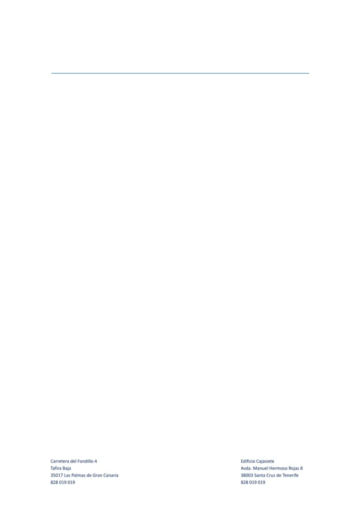Carretera del Fondillo 4 Tafira Baja 35017 Las Palmas de Gran Canaria 828 019 019 7 Edificio Cajasiete Avda. Manuel Hermoso Rojas 8 38003 Santa Cruz de Tenerife 828 019 019