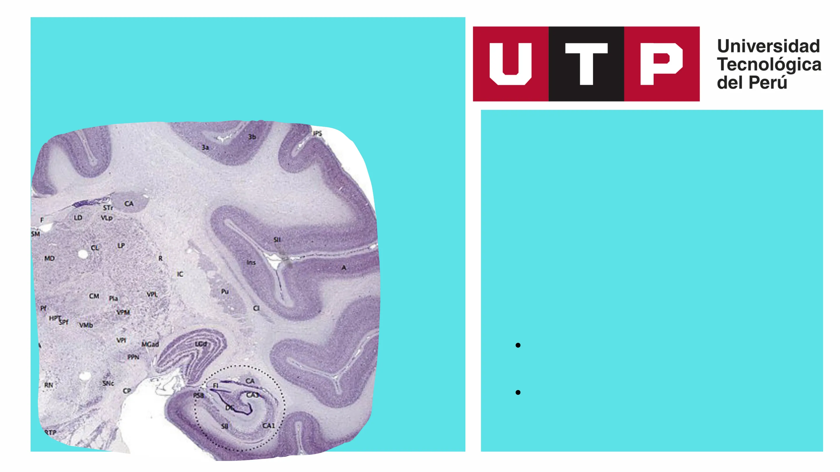 Bases Biológicas del Comportamiento 3b IPS CA STE 9 VLp F SM SIE CL MD R IC CM PLa O VPM VPI LGd PPN RN A CP P58 DE CA1 UTP Universidad Tecnológica del Perú GRUPO : 4 DOCENTE: JESSICA CRISTINA LOPEZ CARRANZA INTEGRANTES: · FLORES COAQUIRA, ROXANA . ESCOBAR MENDOZA, JULIA · VEGAS CASTRO, KIARA THAIS ALEJANDRA SNC CA Pł VPL Pu LPCORTEZA CEREBRAL (INTRODUCCIÓN