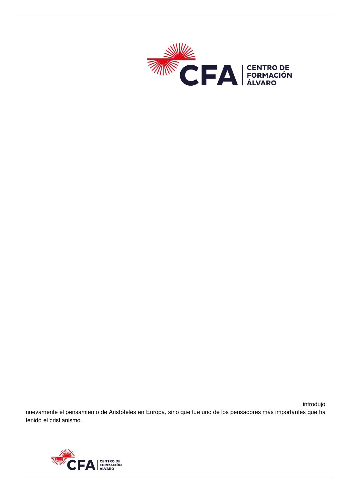 CFA CENTRO DE FORMACIÓN ÁLVARO www.cfalvaro.com Tema 5. Santo Tomás de AquinoFundir la filosofía con la fe, la obra de Aristóteles con las verdades que Dios ha revelado al hombre y de las que la Iglesia es depositaria: ésta es la labor que se propone Sto. Tomás con toda claridad.