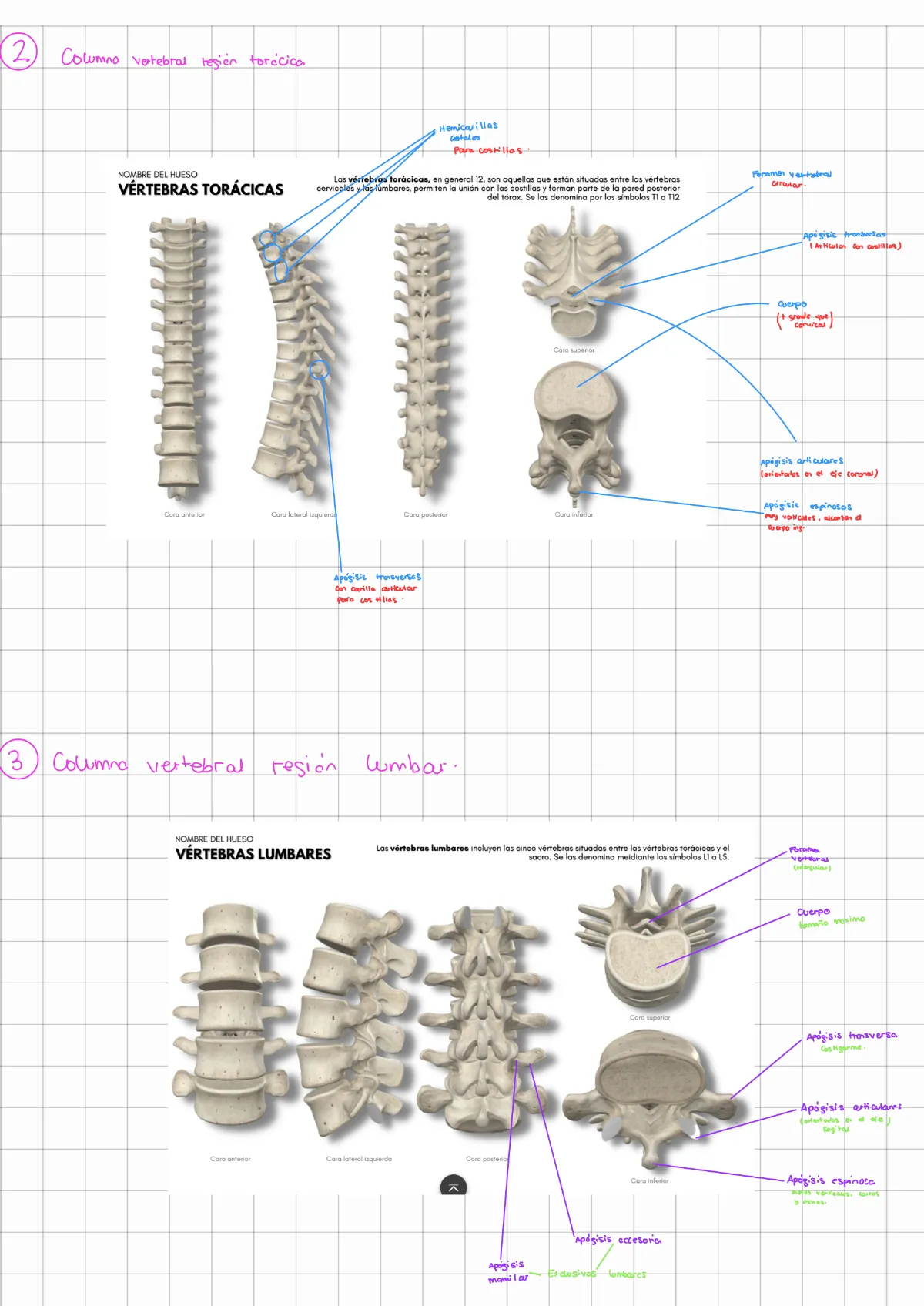 cervicales y las lumbares, permiten la unión con las costillas y forman parte de la pared posterior