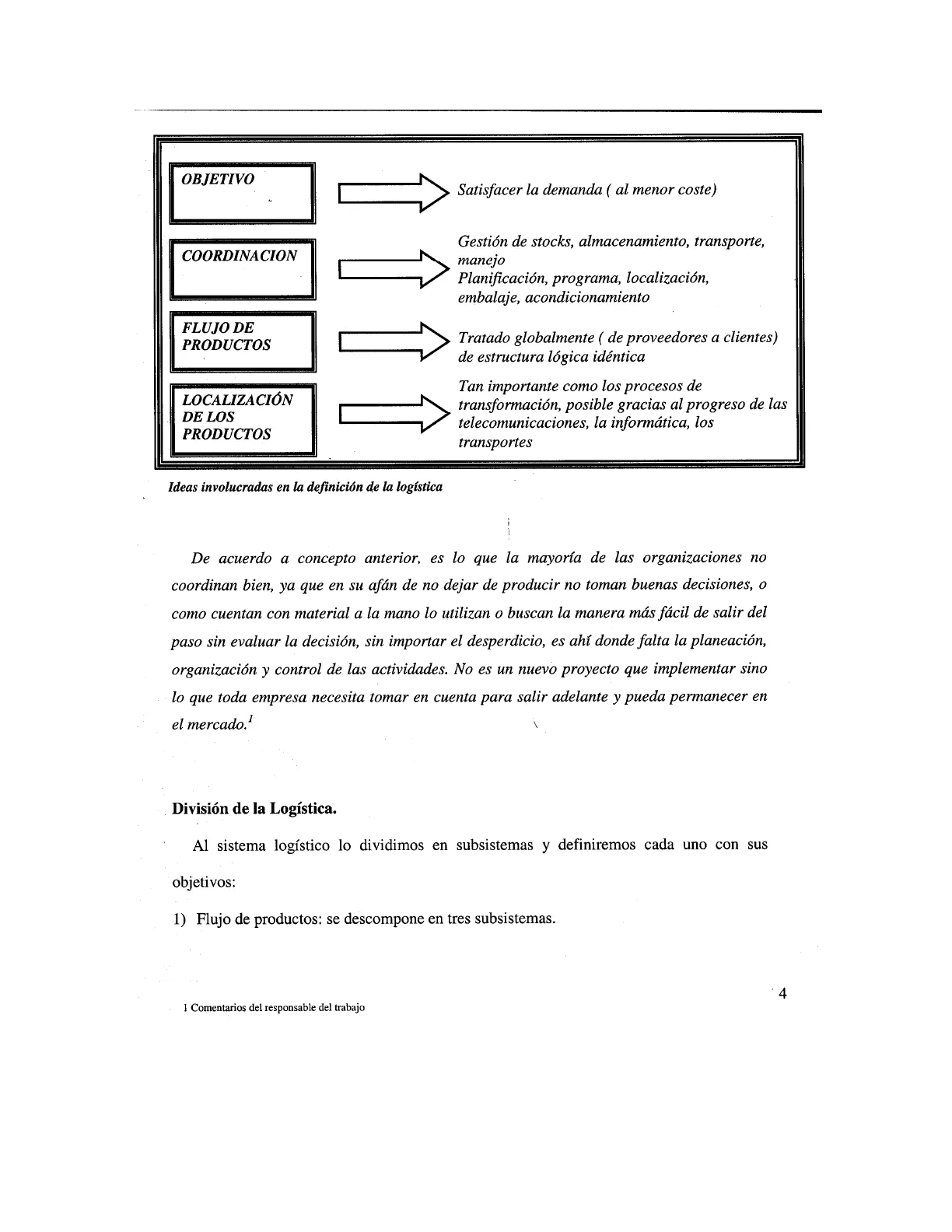 1 Comentarios del responsable del trabajo · 4· Subsistema de abastecimiento: Incluye todos los proveedores y abarca todas las operaciones.efectuadas para colocar la materia prima, elementos, piezas o componentes a producir. Como se aprecia en la figura. Este es uno de los puntos principales que trataremos posteriormente.