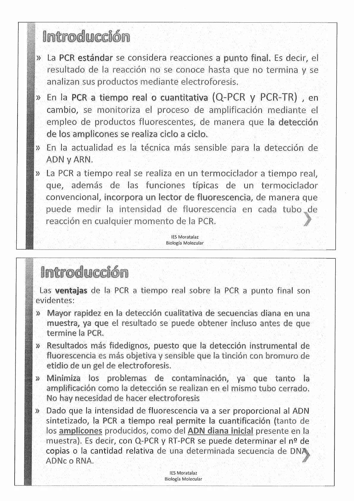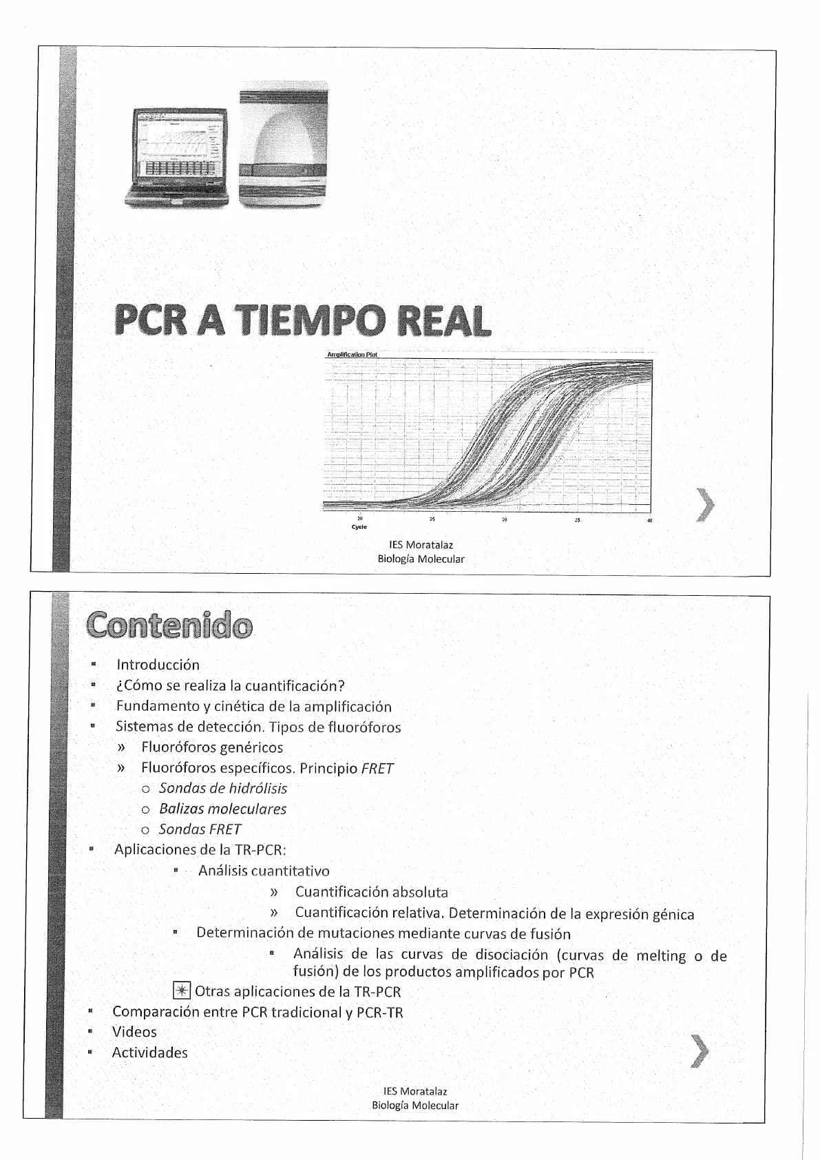 Comparación entre PCR tradicional y PCR-TR Videos Actividades IES Moratalaz Biología Molecular