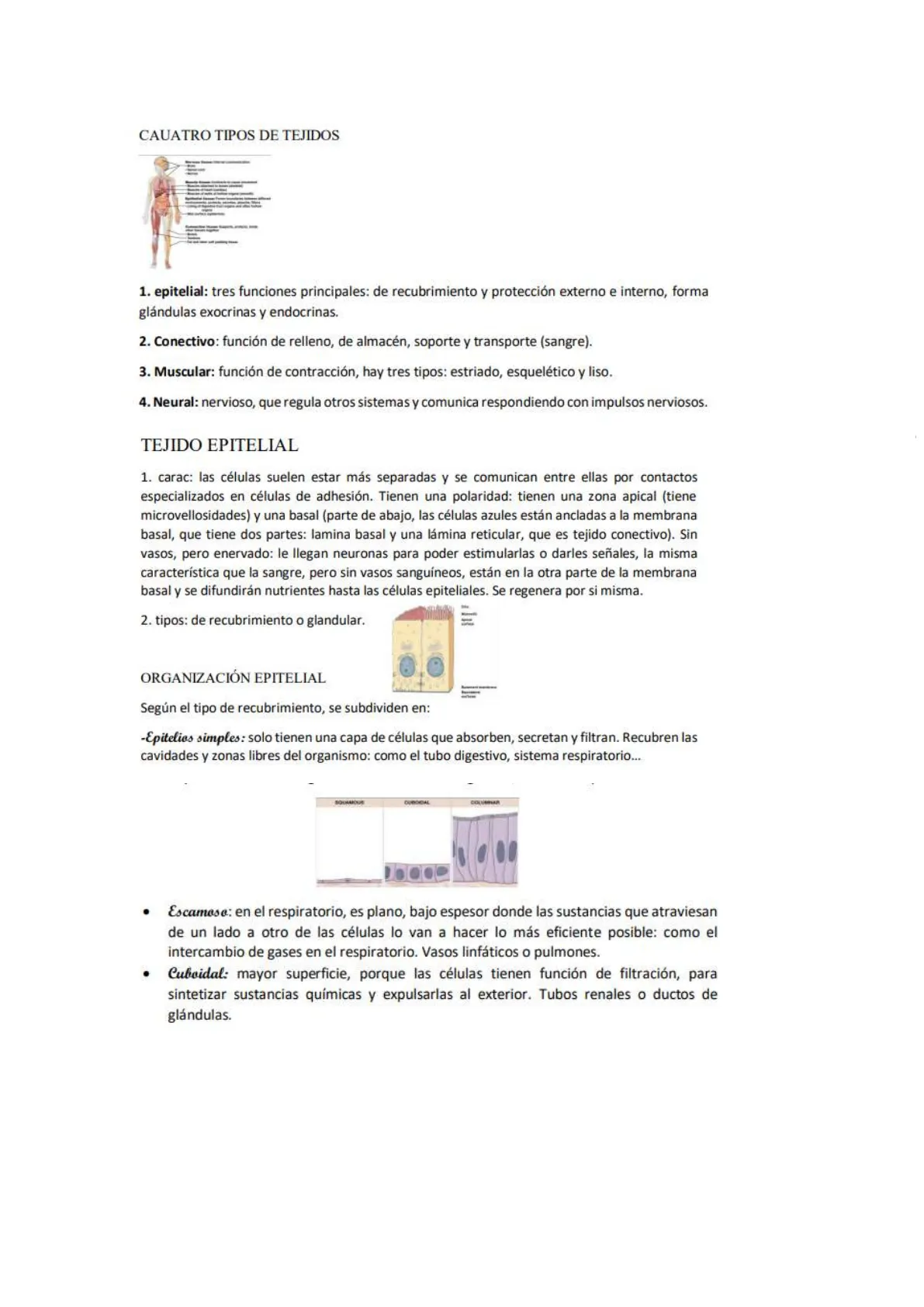 - Muscular: función de contracción, hay tres tipos: estriado, esquelético y liso.