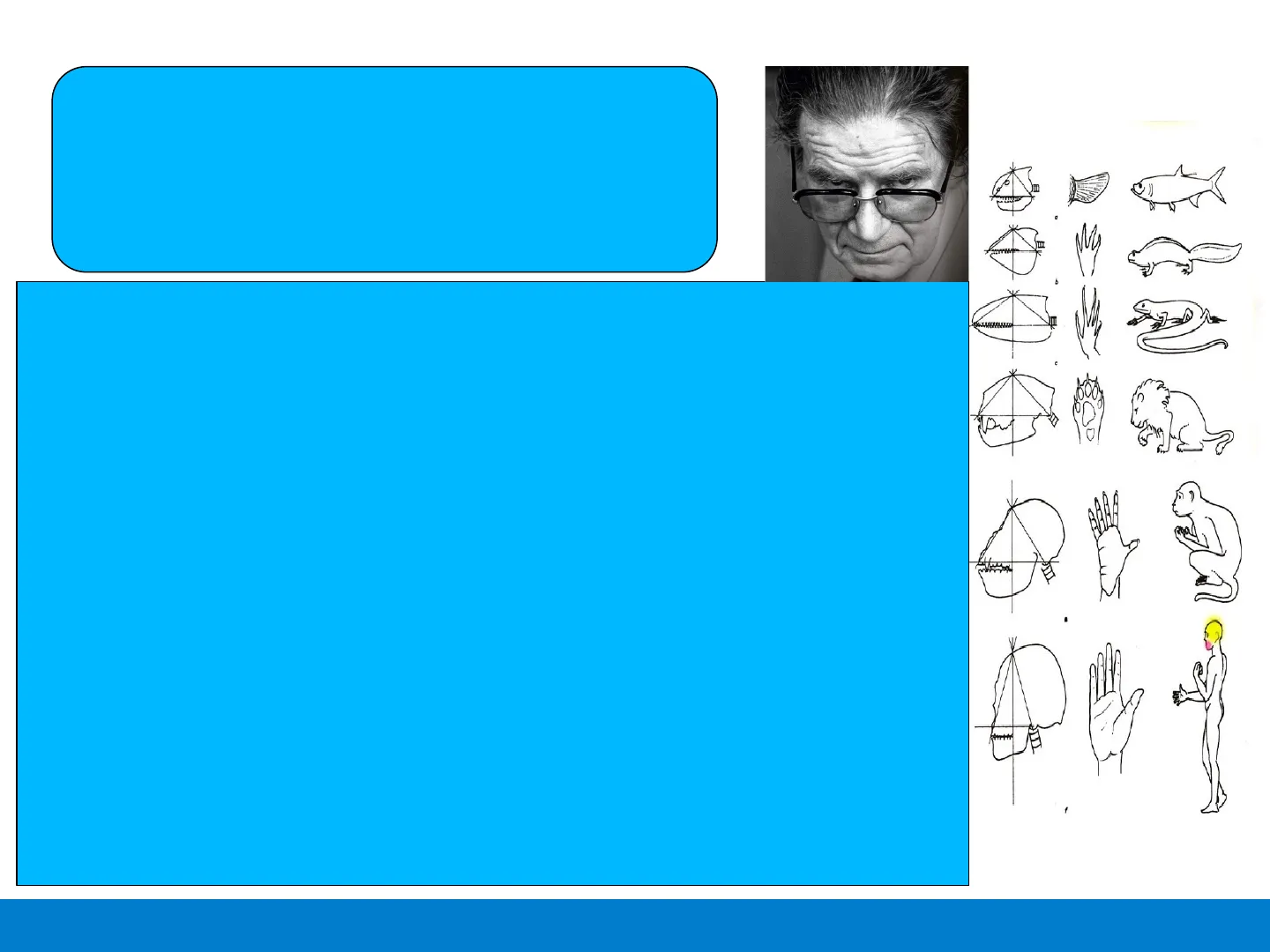 0 Nel passaggio dalla posizione quadrupede a quella bipede si «liberano» due organi: la mano e il volto. Si sviluppano così il GESTO e la PAROLA. Gli arti anteriori del Pitecantropo, liberati dal compito di camminare, lasciarono libera la mano, conferendole così la possibilità di afferrare e costruire, oltre che di gesticolare. Ora, poiché alla mano è stata data la possibilità di afferrare le cose, la BOCCA è stata contemporaneamente liberata da questo compito - il compito di afferrare e prendere - ora è libera di PARLARE. (È difficile impugnare gli strumenti se devi correre contemporaneamente con le mani; ed è difficile parlare con una preda bocca!)