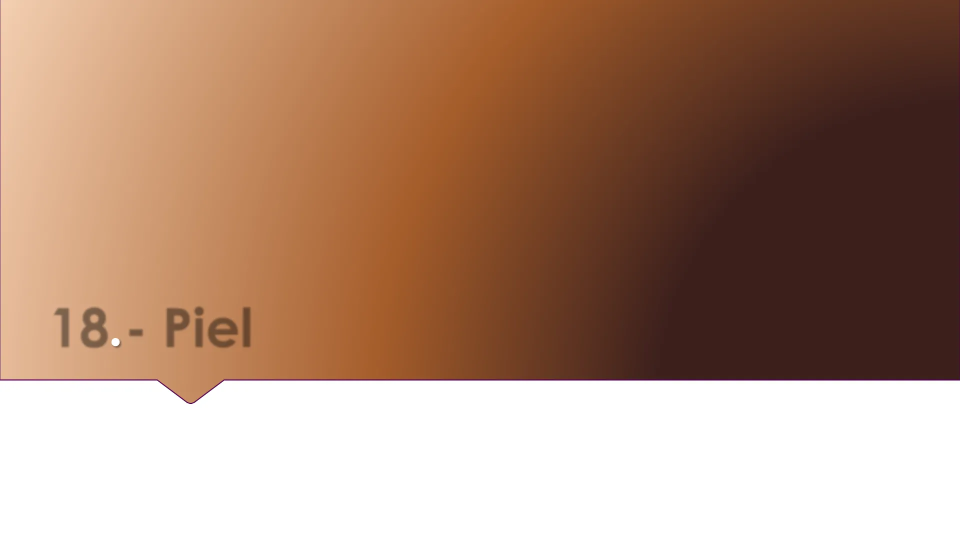18. - PielGeneralidades · Es el órgano más grande del cuerpo · 15% - 20% del peso corporal total · 1.5 - 2 m2 de superficie corporal · Funciones específicas: