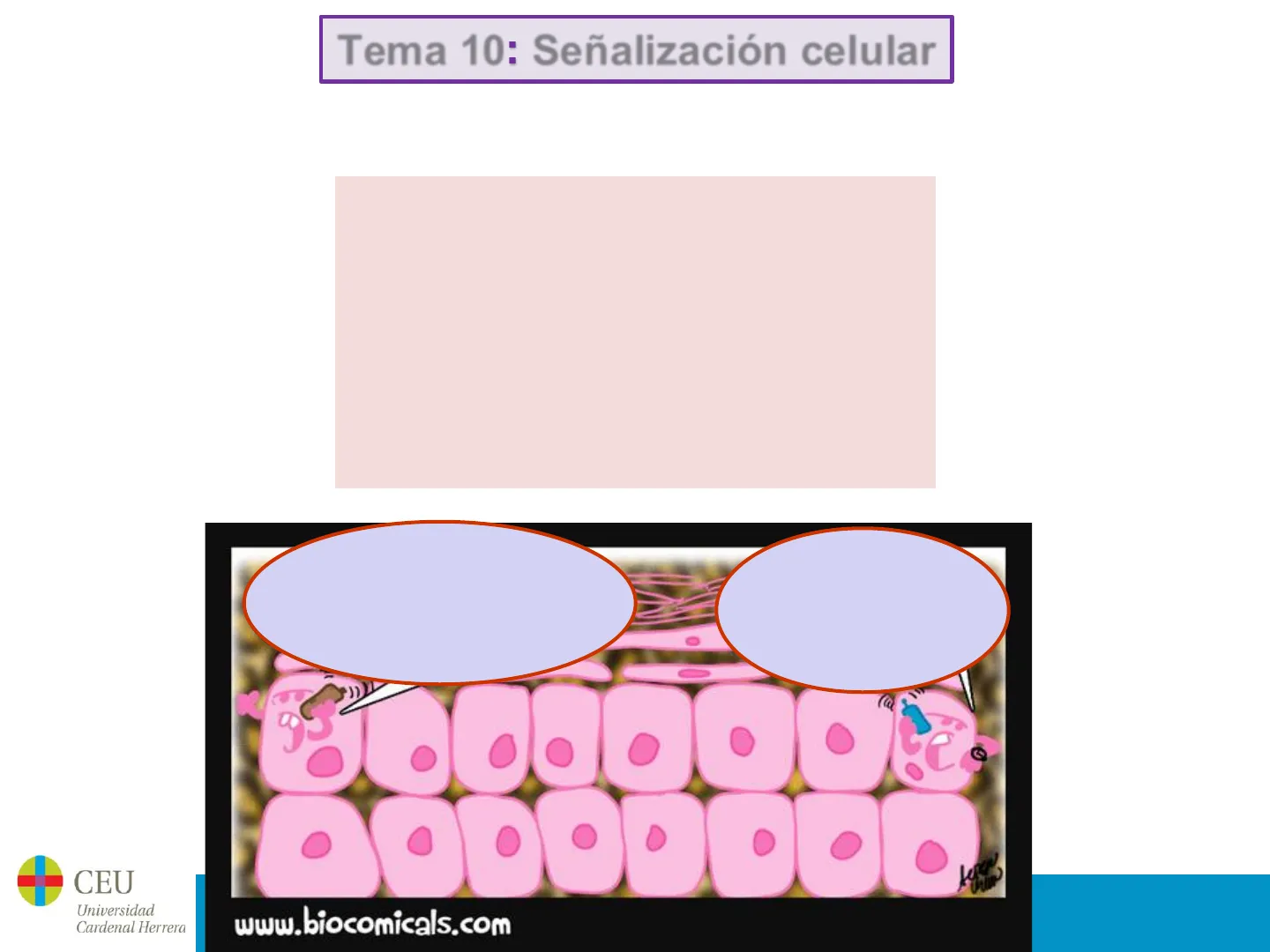 Diapositivas de CEU Universidad Cardenal Herrera sobre Señalización Celular. El Pdf explora las estrategias de comunicación, la emisión de estímulos y los receptores, un tema fundamental de Biología a nivel universitario.