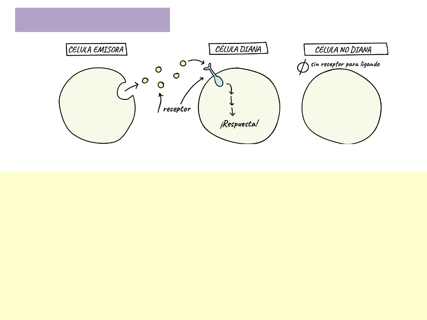 CELULA EMISORA CÉLULA DIANA CÉLULA NO DIANA sin receptor para ligando O C receptor Moléculas señalizadoras ¡Respuesta! ENVÍA RECIBE NO PUEDE RECIBIR