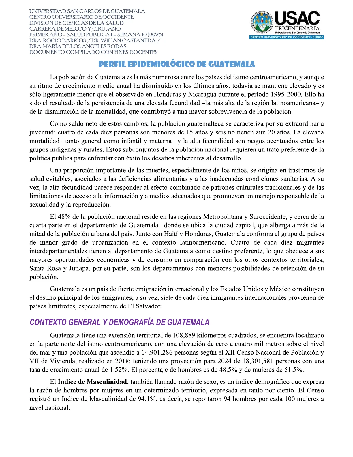UNIVERSIDAD SAN CARLOS DE GUATEMALA CENTRO UNIVERSITARIO DE OCCIDENTE DIVISION DE CIENCIAS DE LA SALUD CARRERA DE MEDICO Y CIRUJANO PRIMER AÑO - SALUD PÚBLICA I - SEMANA 10 (2025) DRA. ROCÍO BARRIOS / DR. WILIAN CASTAÑEDA / DRA. MARÍA DE LOS ANGELES RODAS DOCUMENTO COMPILADO CON FINES DOCENTES USAC TRICENTENARIA Universidad de San Carlos de Guatemala CENTRO UNIVERSITARIO DE OCCIDENTE -CUNOC-