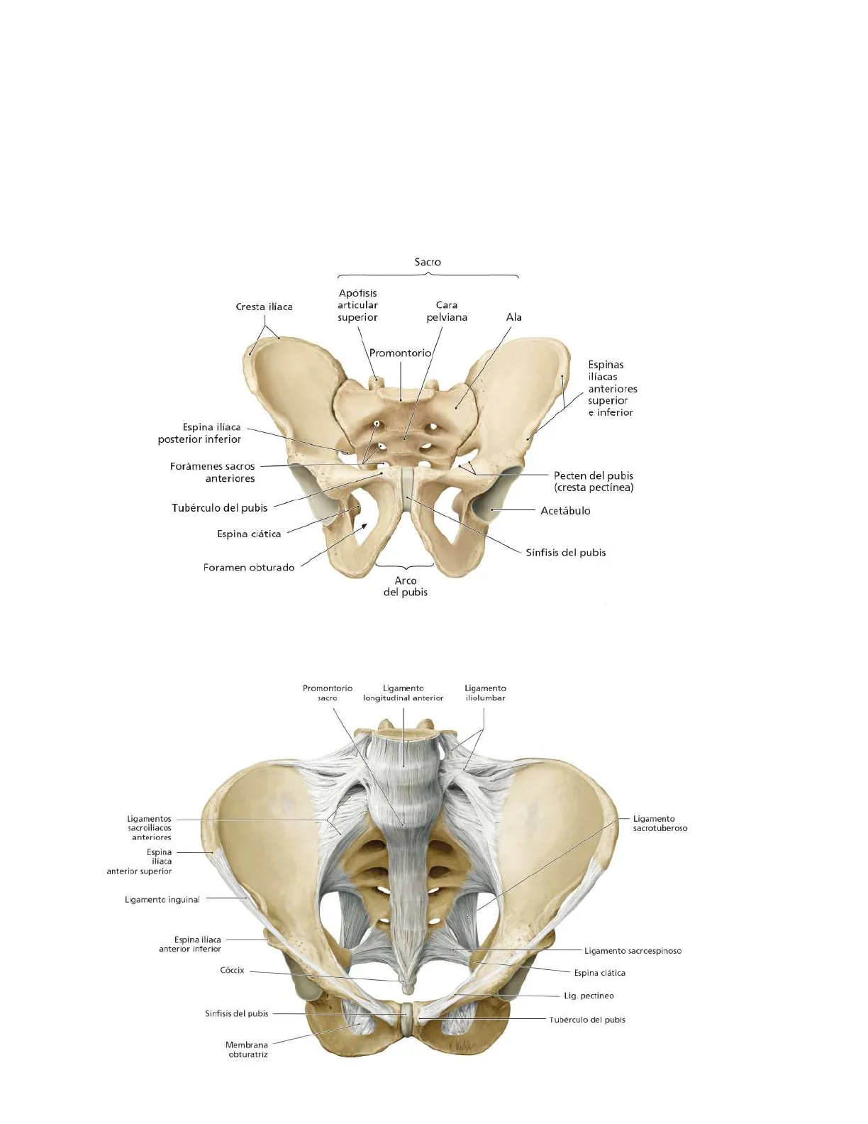 Promontorio sacro Ligamento longitudinal anterior Ligamento iliolumbar Ligamentos sacroiliacos anteriores Ligamento sacrotuberoso Espina ilíaca anterior superior Ligamento inguinal Espina iliaca anterior inferior Ligamento sacroespinoso Cóccix Espina ciática Lig. pectineo Sinfisis del pubis Tubérculo del pubis Membrana obturatrizDisco intervertebral L4/5 Apófisis espinosa de L5 Promontorio Sacro Conducto sacro Espina ilíaca anterior superior Lig. sacroiliaco anterior Foramen ciático mayor Ligamento sacroespinoso Línea arqueada Hiato sacro Linea pectinea Espina ciática Cóccix Canal obturador Ligamento sacrotuberoso Foramen ciático mayor Cara de la sinfisis Membrana obturatriz Tuberosidad isquiática