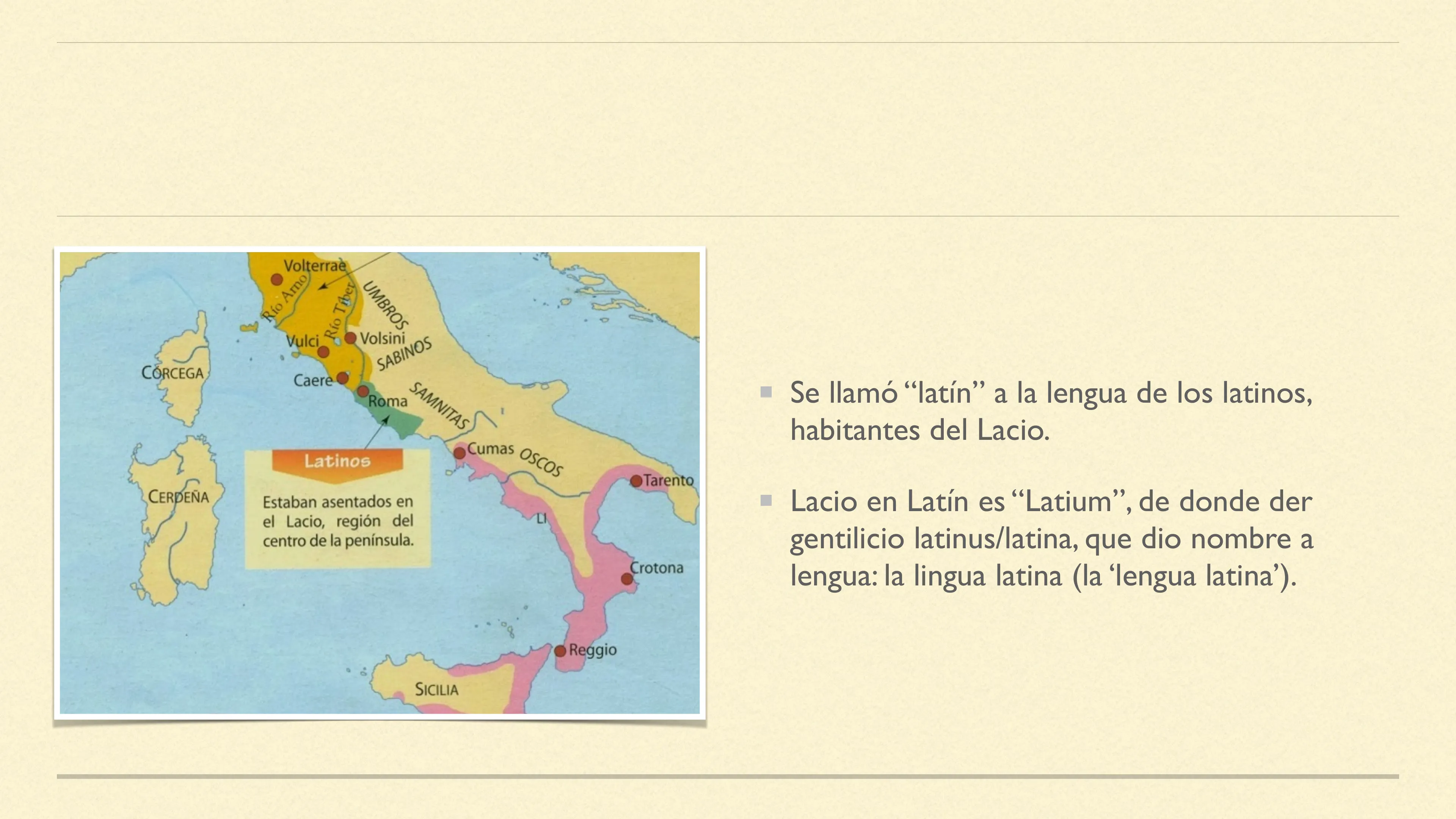 Se llamó "latín" a la lengua de los latinos, los habitantes del Lacio.