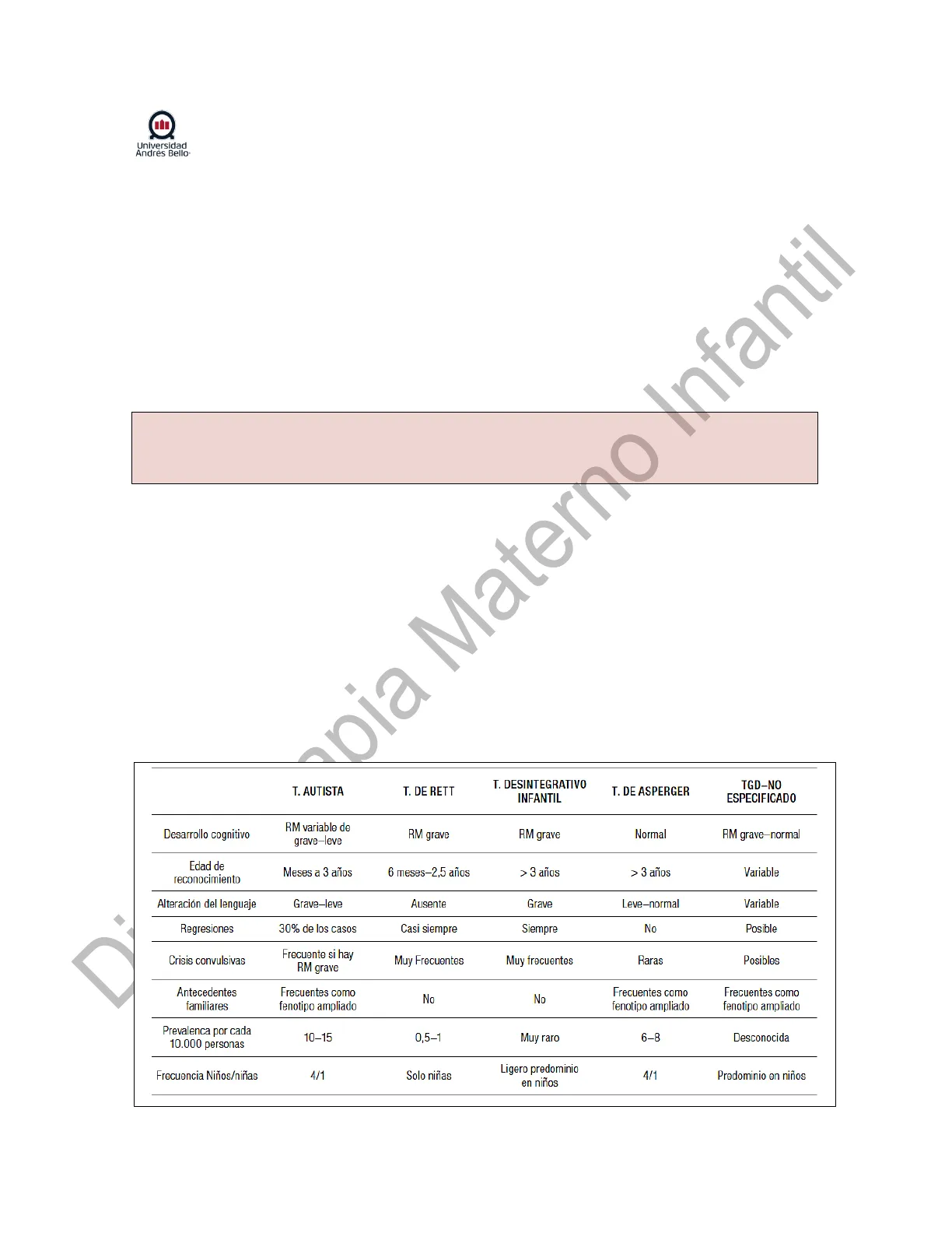 T. AUTISTA T. DE RETT T. DESINTEGRATIVO INFANTIL T. DE ASPERGER TGD-NO ESPECIFICADO