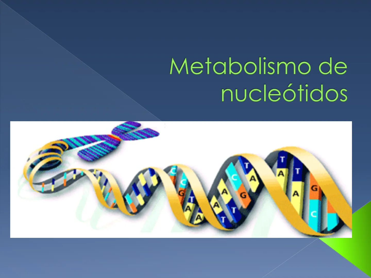 Diapositivas sobre el metabolismo de nucleótidos. El Pdf, útil para estudiantes universitarios de Biología, aborda la composición de un nucleótido, el catabolismo de pirimidinas y los desórdenes metabólicos relacionados con purinas y pirimidinas.