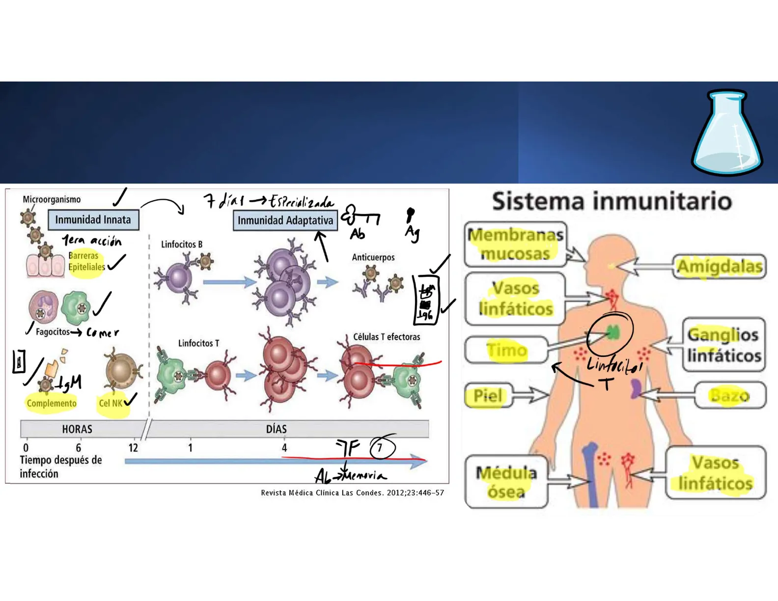 Microorganismo 1 7 días -Especializada Inmunidad Adaptativa Ab Tera acción Linfocitos B Barreras Epiteliales Fagocitos-> Comer Linfocitos T 19M Complemento Cel NK HORAS DÍAS 0 6 12 1 4 IF 1 Tiempo después de infección AL- Memoria Revista Médica Clínica Las Condes. 2012;23:446-57 Sistema inmunitario Membranas mucosas Amígdalas Vasos linfáticos Ganglios linfáticos Timo Linfocitos AT Piel Bazo Médula ósea Vasos linfáticos Inmunidad Innata Ag Anticuerpos 196 Células T efectorasPO2. Alvéolos Pulmonares EXAGERACIÓN DEL S.I. Neumocitos 20cm # 1-Resp. Int. gases #2-Sint. det Surfactante alveolar Cél. especializada Músculos = Miocitos Cerebro = Neumann- Intest : EnterTs Hígado = Hepatocitos-> Macró fagos Innato