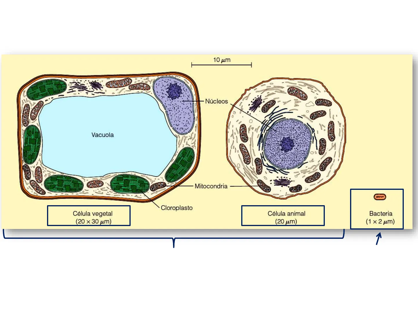 | Organelas citoplasmáticas con membrana | No posee | Mitocondrias, cloroplastos, peroxisomas (los cloroplastos presentes sólo en células vegetales) |