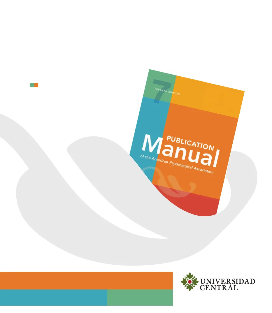 Las Normas APA (American Psychological Association) son un conjunto de directrices diseñadas para facilitar una comunicación clara y precisa en las publicaciones académicas, especialmente en la citación y referenciación de fuentes de información. Aunque surgidas en el campo de la psicología, su uso se ha extendido a otros campos de las ciencias sociales, las ciencias económicas y las ciencias aplicadas, entre otras, por su practicidad para la preparación de manuscritos para publicación, trabajos estudiantiles y otros productos académicos. Tras diez años desde su última edición, las Normas APA se actualizan para responder a las nuevas dinámicas y medios de producción y difusión de la información. Este documento, producido por la Coordinación Editorial de la Universidad Central, presenta una guía resumida y práctica de las generalidades y novedades más relevantes de este estilo de referenciación, con el fin de facilitar su uso en el ámbito académico. No busca ser exhaustiva, sino ofrecer una orientación general acerca de las normas y novedades más útiles e importantes, así como ofrecer su adaptación al contexto hispanohablante. En caso de requerir información más completa, se sugiere acudir al manual completo (disponible hasta ahora solo en inglés) o a www.apastyle.apa.org. Esta segunda versión amplía el repertorio de orientaciones y casos de citación y referenciación, para servir no solo como guía de actualización para los ya conocedores, sino como manual de uso para la comunidad académica en general.