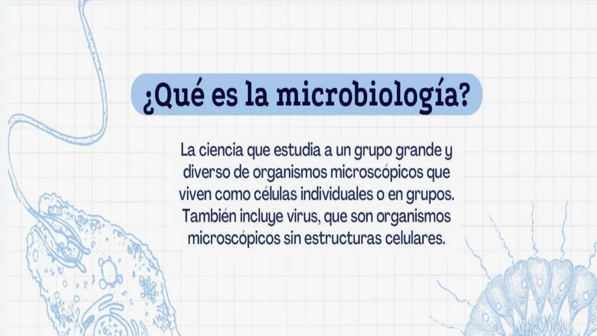 ¿Qué es la microbiología? La ciencia que estudia a un grupo grande y diverso de organismos microscópicos que viven como células individuales o en grupos. También incluye virus, que son organismos microscópicos sin estructuras celulares.Gracias al microscopio El objeto de estudio de la microbiología son aquellos organismos que no pueden ser vistos por el ojo humano, por lo que el instrumento de este campo de la biología es el microscopio, que fue inventado en el siglo XVII.El padre de la microbiología Conocido como el "padre de la microbiología", fue un empresario holandés, la primera persona en realizar observaciones y descubrimientos utilizando microscopios, instrumento que mejoró con el paso del tiempo.Objetos de estudio Los organismos estudiados por la microbiología van desde células, agregados celulares eucariotas y procariotas, hongos, virus y bacterias, además de otros organismos microscópicos.