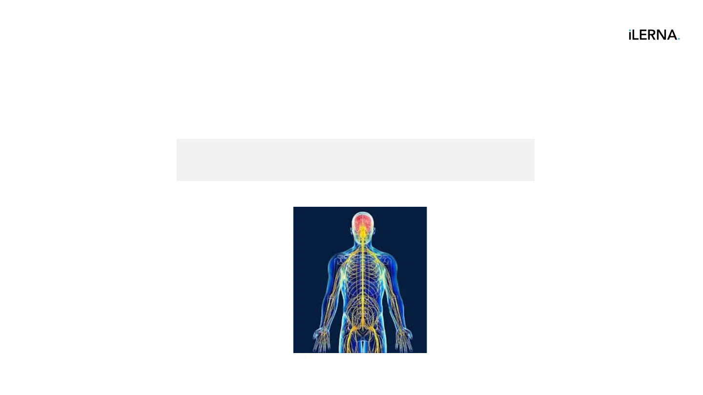 4. El sistema nerviosos: 4.1. Anatomia, topografía y función del SN (nervios (tipos) y tejido nervioso) 4.2. División del SN (partes, características y protección del SNC y SNP) 4.3. Función del SN (función del SNC y SNP) 4.4. Relación de la actividad neuronal, muscular y sensorial (diapositivas) 4.5. Sinapsis neurona (diapositiva) 4.6. Placa motora (NO) En este tema se pueden preguntar imágenes de de la anatomía del sistema nervioso central I 4.7. Transmisión impulso nervioso (NO) 4.8. Manifestaciones y enfermedades (lesiones cerebrales y enfermedades neuropsicológicas del pdf)İLERNA.