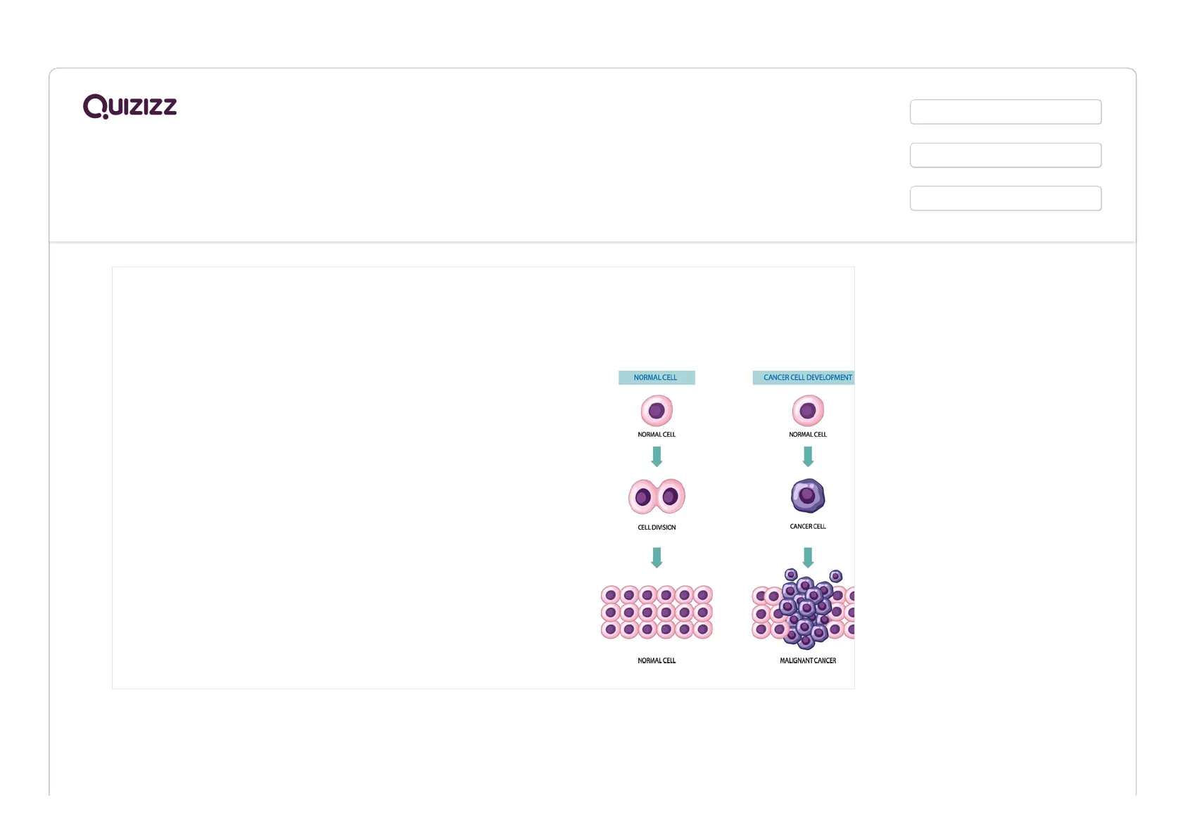 QUIZIZZ Hojas de trabajo Desarrollo tumoral Total questions: 53 Tiempo de la hoja de trabajo: 27minutos Nombre del instructor: Patricia Castillo Nombre Clase Fecha