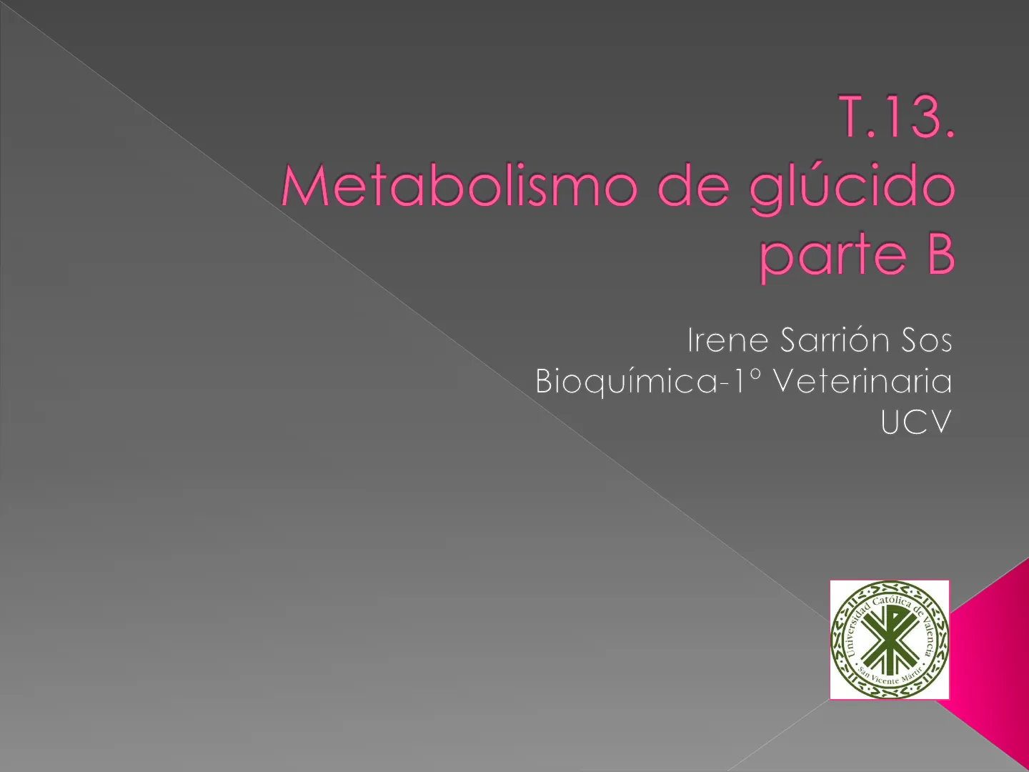 T.13. Metabolismo de glúcido parte B Irene Sarrión Sos Bioquímica-1º Veterinaria UCV ad Catolica de Valencia San Vicente MártirMETABOLISMO DEL GLUCÓGENO Degradación y biosíntesis