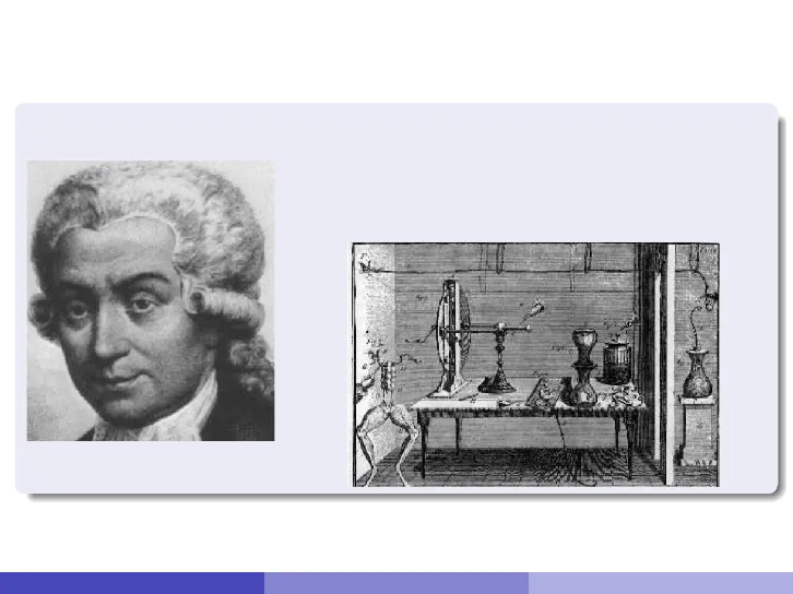 Fondamenti di Elettromagnetismo: Elettromagnetismo in Medicina Franco Moglie Dipartimento di Ingegneria dell'Informazione (DII) Università Politecnica delle Marche, Ancona, Italy (Elettrostatica) A 00 UNIVER ECNICA DELLE MARCHE UNIVERSITÀ POLITECNICA DELLE MARCHE F. Moglie (DII - UNIVPM) 01.08 Galvani 2021 1/ 46Elettromagnetismo in Medicina Luigi Galvani (1737-1798) formula la teoria dell'elettricità animale. Suppone che l'elettricità sia presente nei muscoli della rana. F. Moglie (DII - UNIVPM) 01.08 Galvani 2021 2/46Elettromagnetismo in Medicina D'Arsonval scopre che una corrente elettrica alla frequenza di 10 kHz o più produce una sensazione di calore nell'attraversare i tessuti viventi, senza essere accompagnata dalla contrazione muscolare dolorosa che si avverte a più basse frequenze. Era il 1892, anno che segna l'ingresso dell'elettromagnetismo nella Medicina. Nel 1899, nell'ospedale Hotel-Dieu di Parigi si effettuarono i primi esperimenti terapeutici in collaborazione con il neurologo M. Benedikt. F. Moglie (DII - UNIVPM) 01.08 Galvani 2021 3/46Elettromagnetismo in Medicina