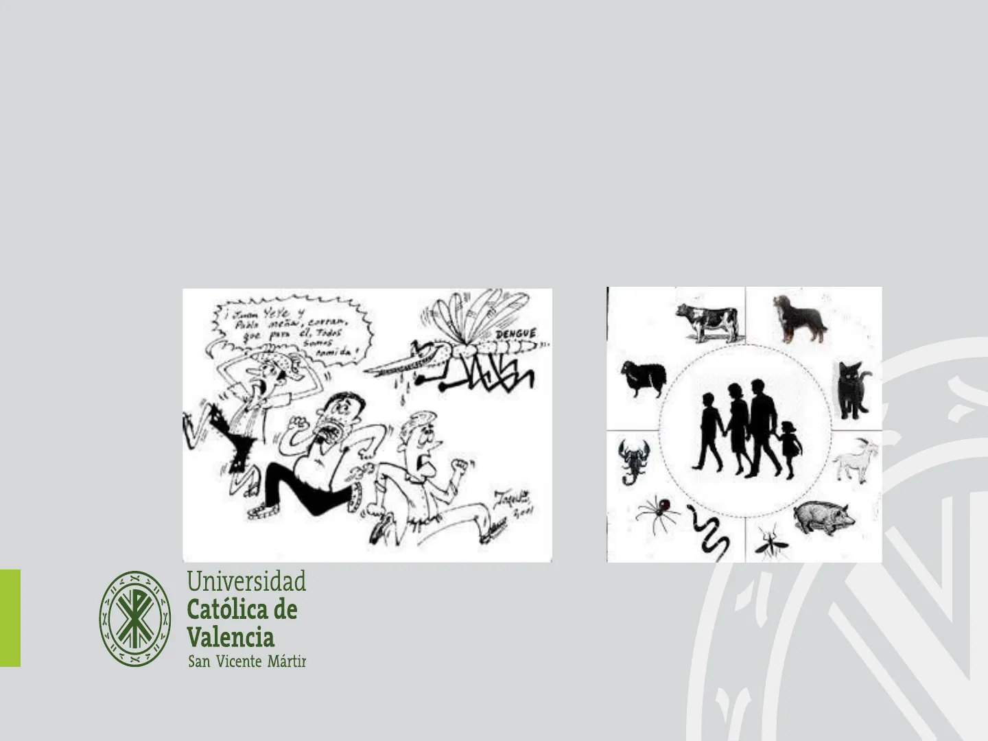 Diapositivas de Universidad Católica de Valencia San Vicente Mártir sobre Enfermedades Transmitidas por Vectores y Zoonosis. El Pdf, útil para Biología a nivel universitario, detalla conceptos de vector y reservorio, estrategias de prevención y control, y medidas para personas y animales, incluyendo vigilancia epidemiológica.