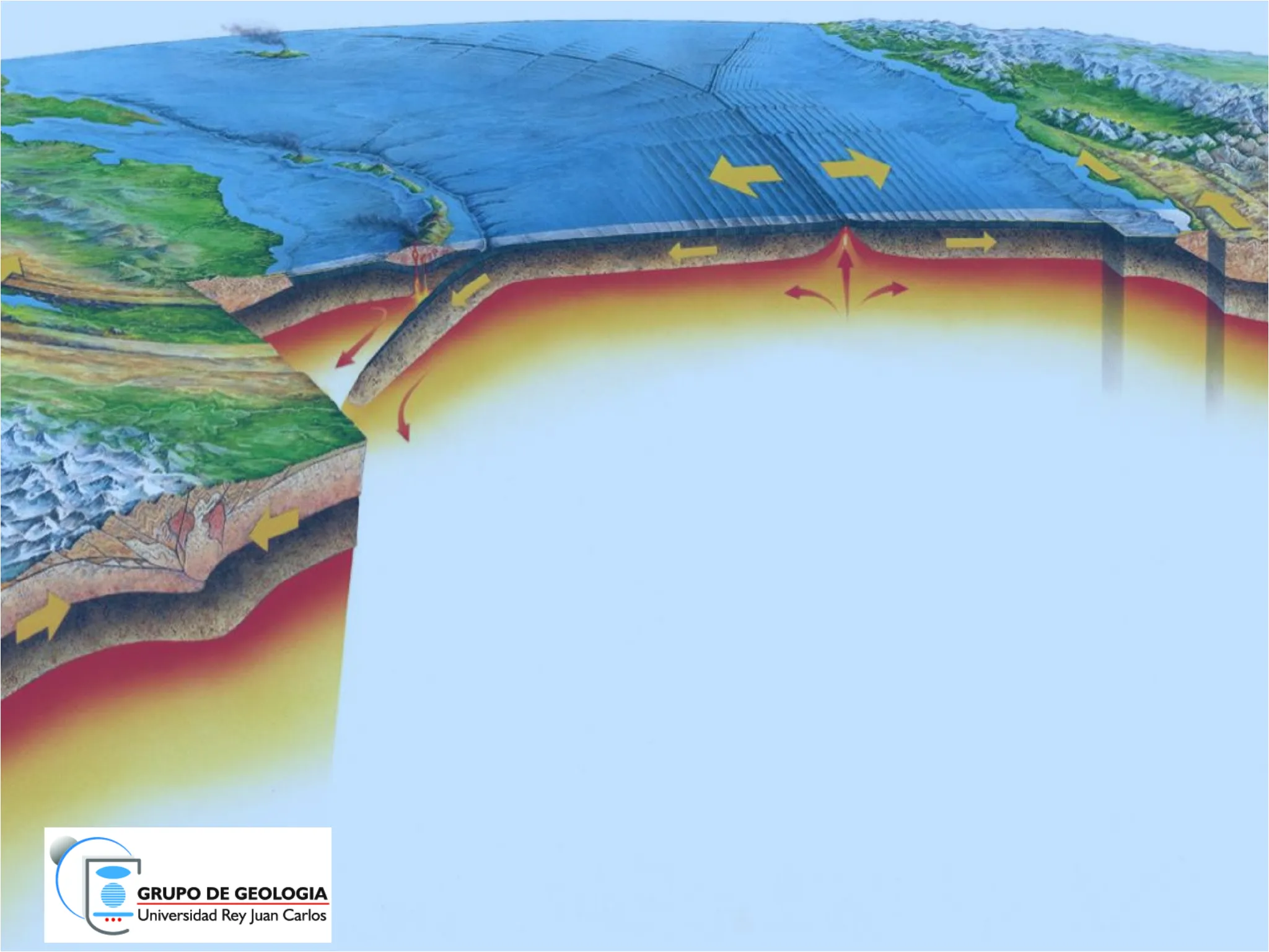 Diapositivas de Grupo de Geologia Universidad Rey Juan Carlos sobre Bloque 1: Introducción y origen de la Tierra. El Pdf explora la tectónica de placas y el ciclo geológico, con foco en la deriva continental y el paleomagnetismo, para estudiantes universitarios de Ciencias.