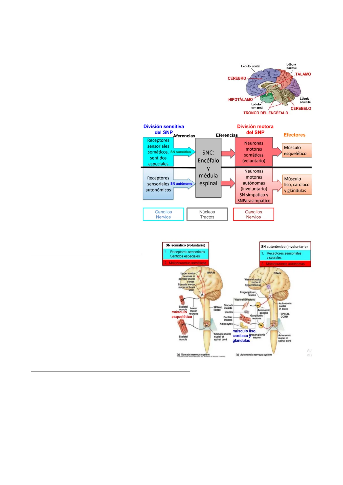 SN somático (voluntario) SN autonómico (involuntario) 1. Receptores sensoriales Sentidos especiales 1. Receptores sensoriales viscerales 2. Motoneuronas somáticas 2. Motoneuronas autónomas
