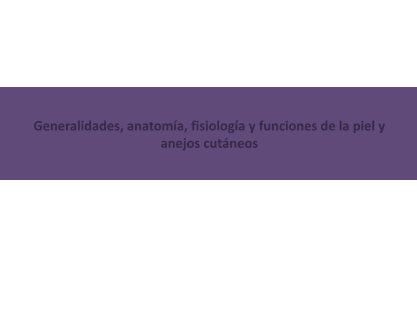 Generalidades, anatomía, fisiología y funciones de la piel y