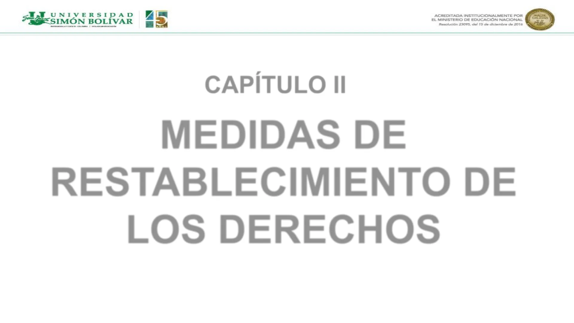CAPÍTULO II MEDIDAS DE RESTABLECIMIENTO DE LOS DERECHOST.T UNIVERSIDAD SIMÓN BOLÍVAR 5 ACREDITADA INSTITUCIONALMENTE POR EL MINISTERIO DE EDUCACIÓN NACIONAL Resolución 23095, del 15 de diciembre de 2016 CALKVALD