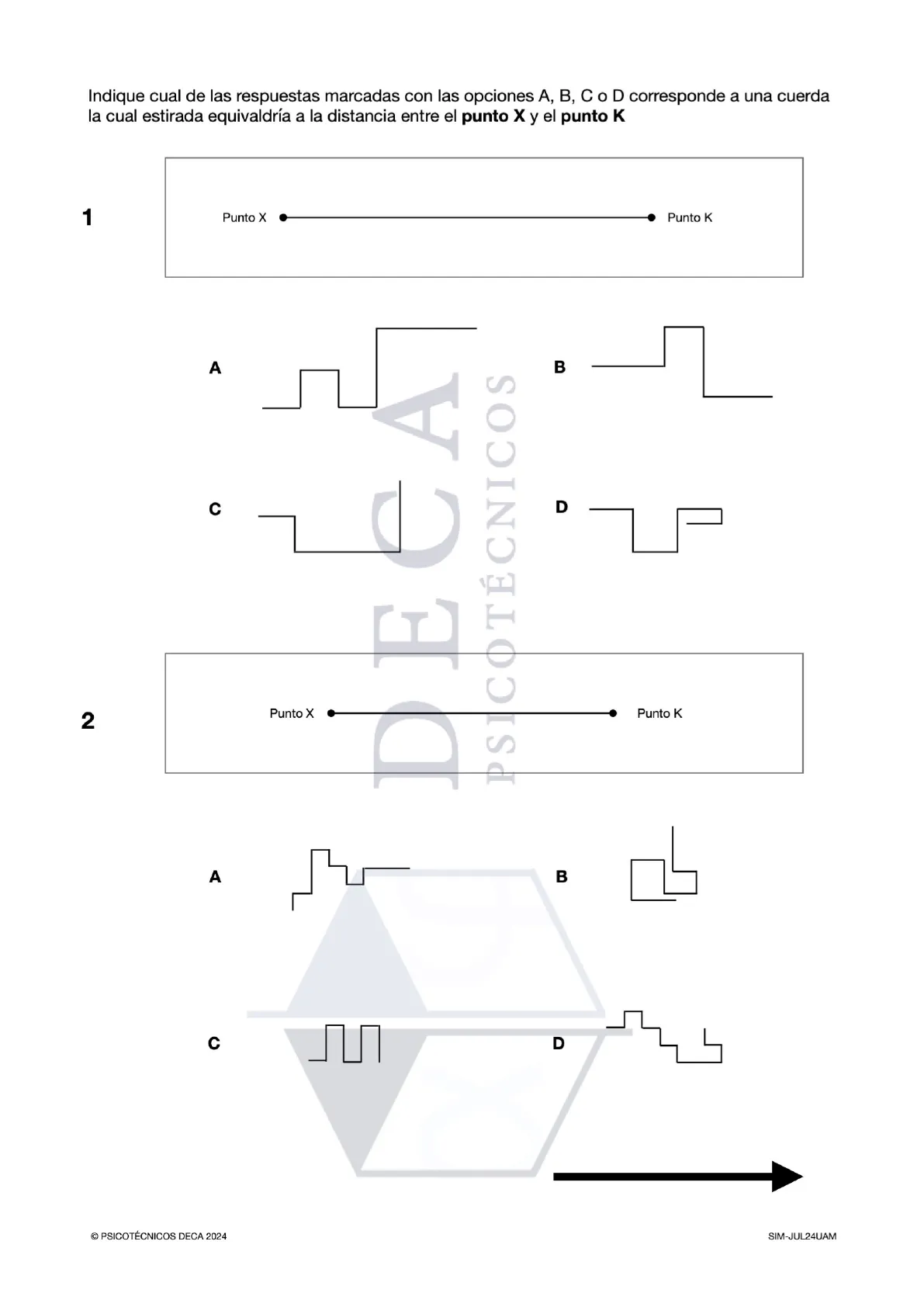 ICOS DECA PSICOTECNICOS DECAPIndique cual de las respuestas marcadas con las opciones A, B, C o D corresponde a una cuerda la cual estirada equivaldría a la distancia entre el punto X y el punto K 1 Punto X · Punto K A B D C DECA PSICOTÉCNICOS . Punto K A B C D @ PSICOTÉCNICOS DECA 2024 SIM-JUL24UAM 2 Punto X