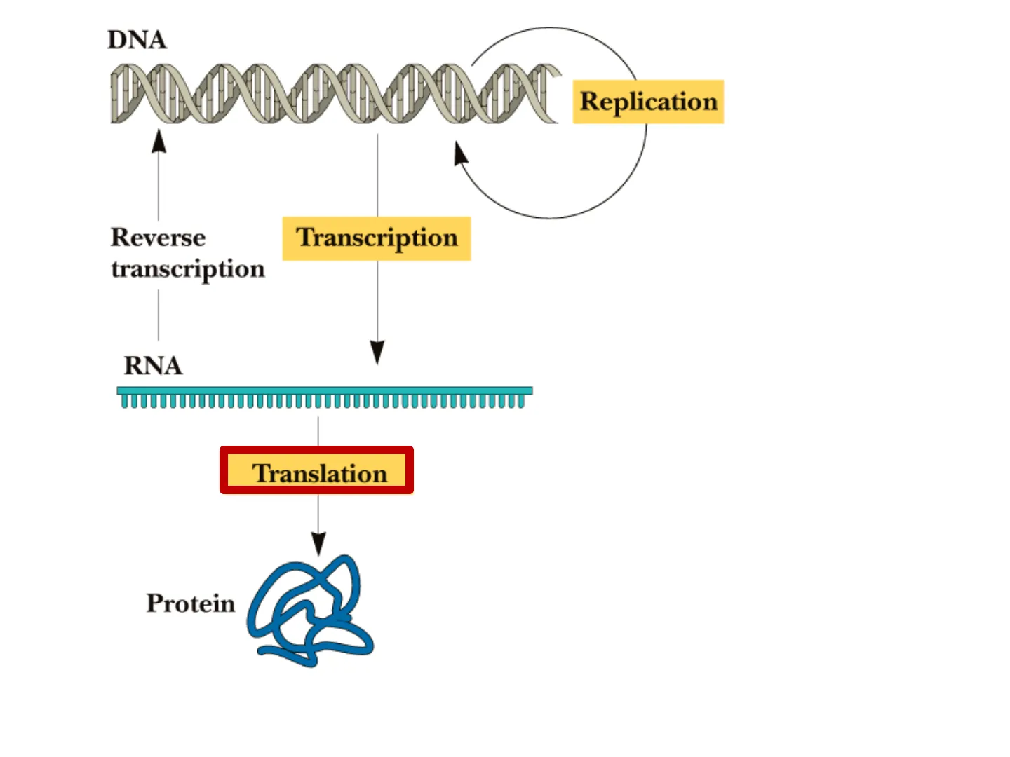 Control postraduccionalDNA Replication Reverse transcription Transcription RNA Translation Protein El "código genético" es el conjunto de pautas que rigen la transferencia de la información contenida en el mRNA para la síntesis de proteínas. Las proteínas son esenciales para todos los procesos vitales La traducción suele ser diana de los antibióticos.La síntesis proteica consume hasta el 90% de la energía química utilizada por la célula en todas las reacciones biosintéticas