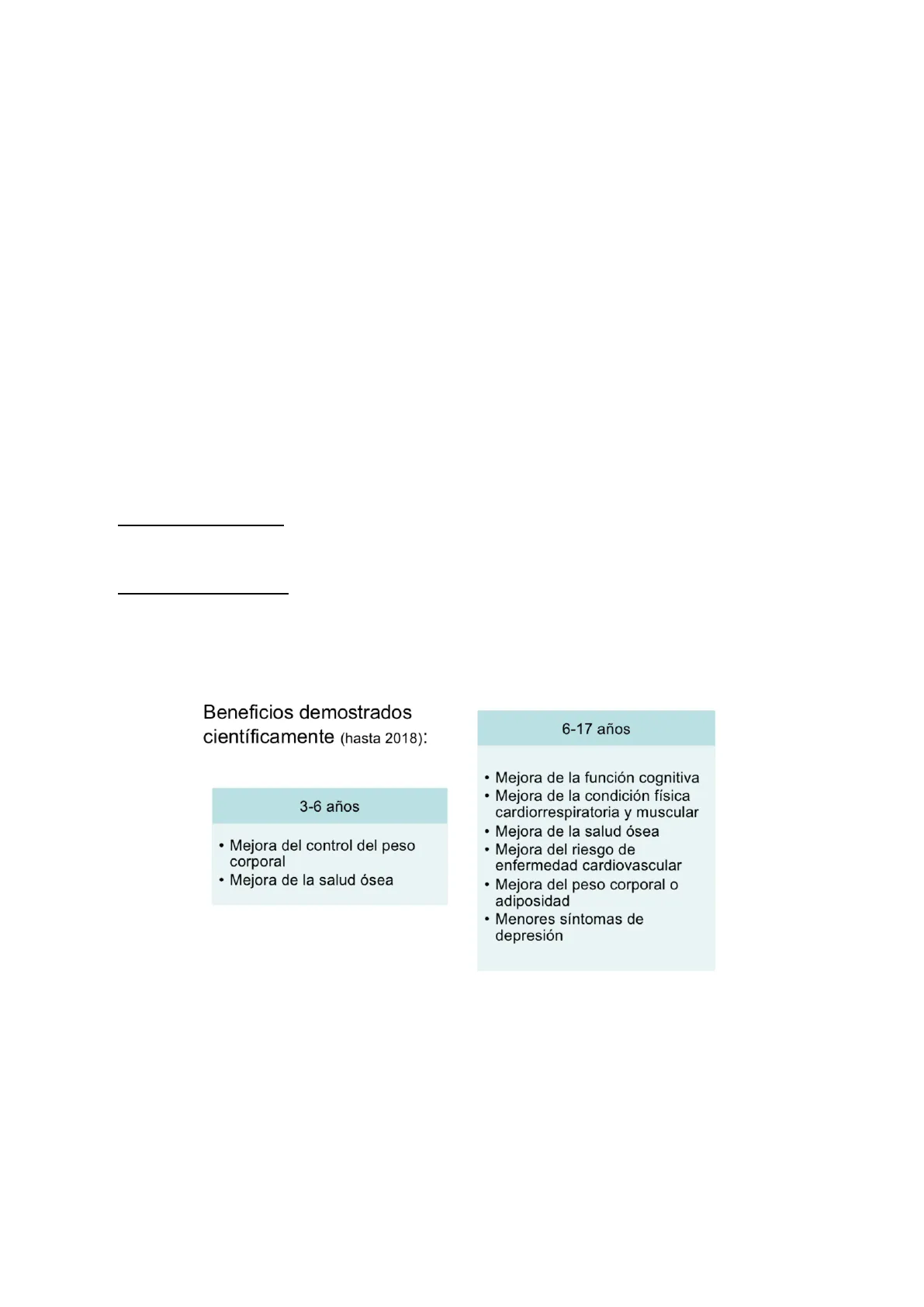6-17 años · Mejora de la función cognitiva · Mejora de la condición física cardiorrespiratoria y muscular · Mejora de la salud ósea · Mejora del riesgo de enfermedad cardiovascular · Mejora del peso corporal o adiposidad · Menores síntomas de depresión