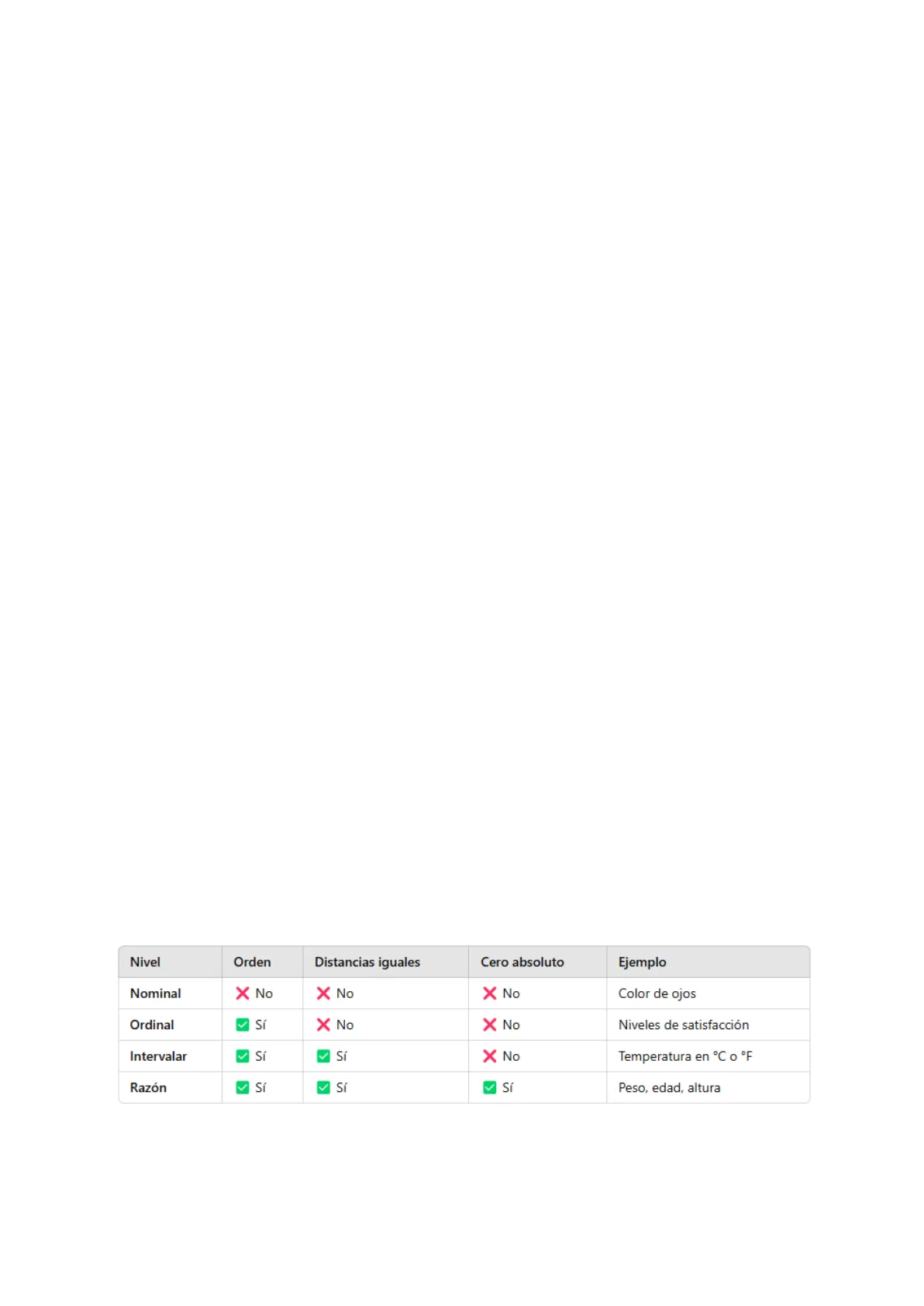- El nivel de medición intervalar requiere distancias iguales entre cada valor. Por lo general