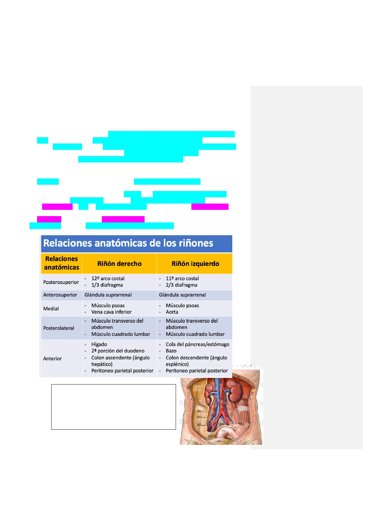 Relaciones anatómicas de los riñones