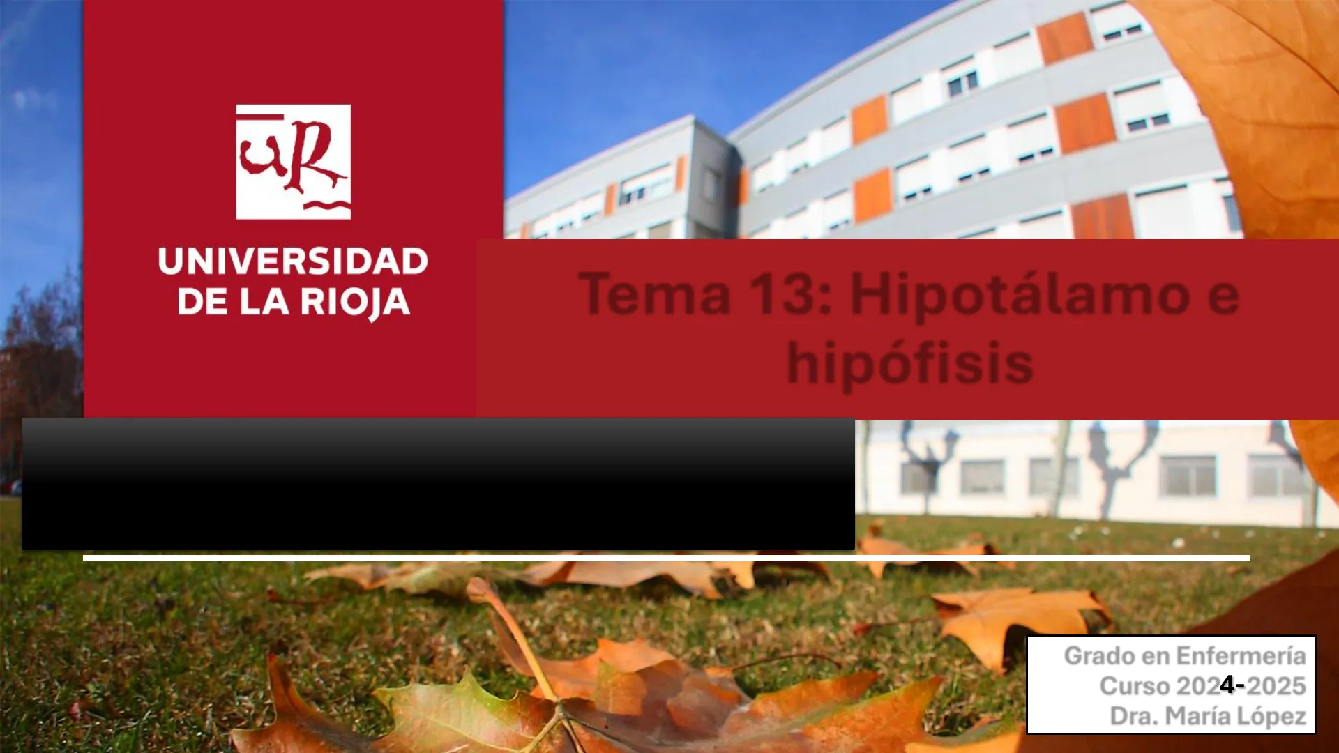 UR UNIVERSIDAD DE LA RIOJA Tema 13: Hipotálamo e hipófisis Asignatura: Fisiología II Fisiología endocrina Grado en Enfermería Curso 2024-2025 Dra. María LópezBLOQUE: Fisiología endocrina TEMA 13. HORMONAS HIPOTALÁMICAS E HIPOFISARIAS. TEMA 14. HORMONAS SUPRARRENALES. TEMA 15. ENDOCRINOLOGÍA REPRODUCTIVA. TEMA 16. HORMONAS TIROIDEAS. TEMA 17. METABOLISMO FOSFOCÁLCICO. TEMA 18. REGULACIÓN DE LA TEMPERATURA CORPORAL. TEMA 19. BALANCE ENERGÉTICO nctreeBLOQUE: Fisiología endocrina TEMA 13. HORMONAS HIPOTALÁMICAS E HIPOFISARIAS. TEMA 14. HORMONAS SUPRARRENALES. TEMA 15. ENDOCRINOLOGÍA REPRODUCTIVA. TEMA 16. HORMONAS TIROIDEAS. TEMA 17. METABOLISMO FOSFOCÁLCICO. TEMA 18. REGULACIÓN DE LA TEMPERATURA CORPORAL. TEMA 19. BALANCE ENERGÉTICO