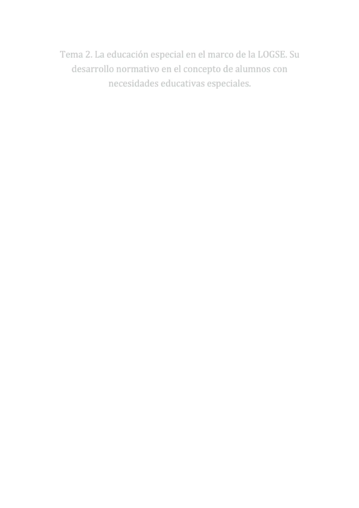 Tema 2. La educación especial en el marco de la LOGSE. Su desarrollo normativo en el concepto de alumnos con necesidades educativas especiales. Tema 2. La educación especial en el marco de la LOGSE. Su desarrollo normativo en el concepto de alumnos con necesidades educativas especiales.