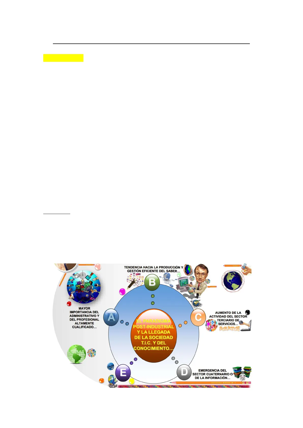 En resumen, el paradigma post-industrial y la llegada de la sociedad TIC y del conocimiento se caracteriza por: