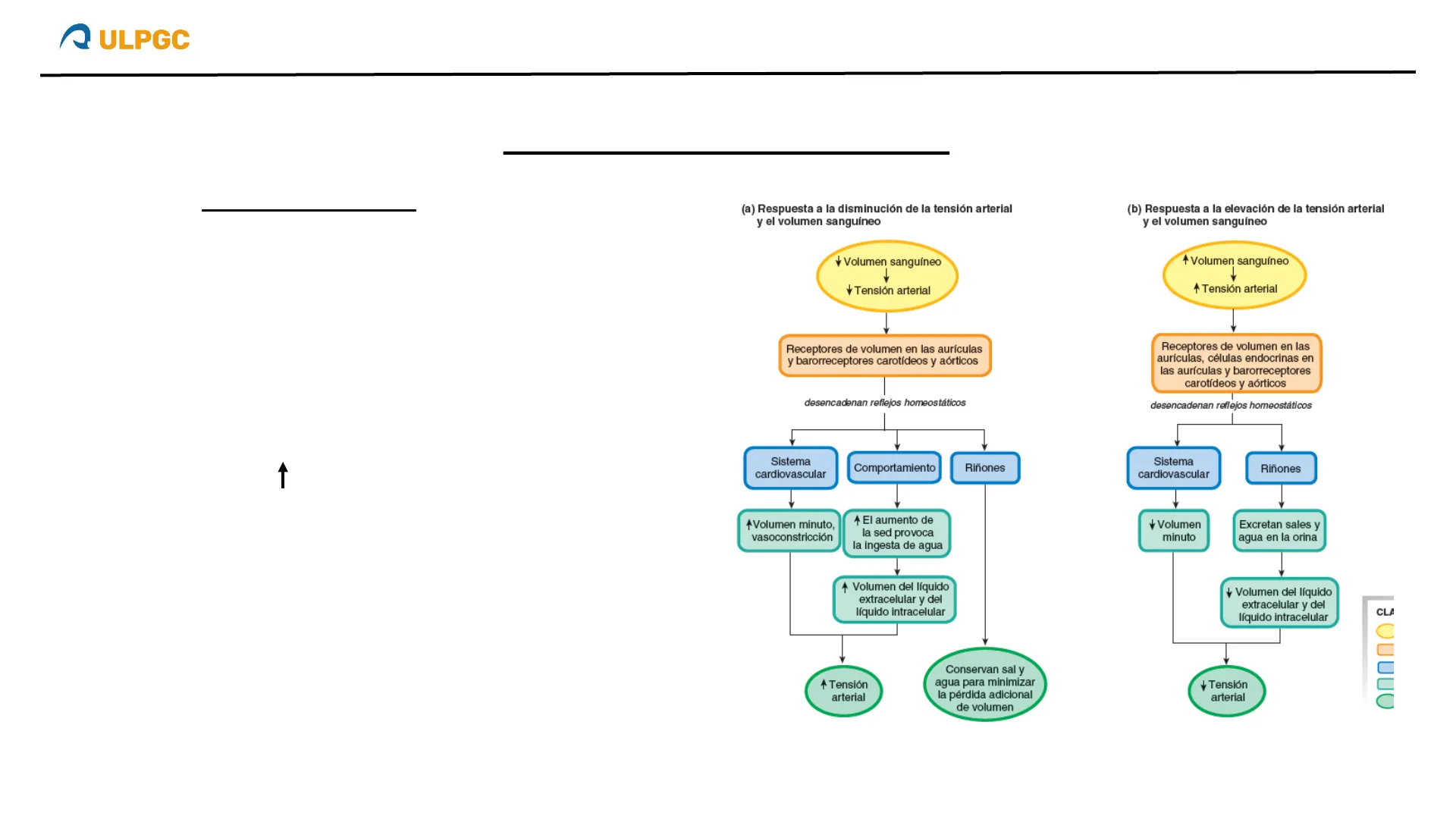 (b) Respuesta a la elevación de la tensión arterial y el volumen sanguíneo + Volumen sanguíneo + Tensión arterial Receptores de volumen en las aurículas, células endocrinas en las aurículas y barorreceptores carotídeos y aórticosULPGC