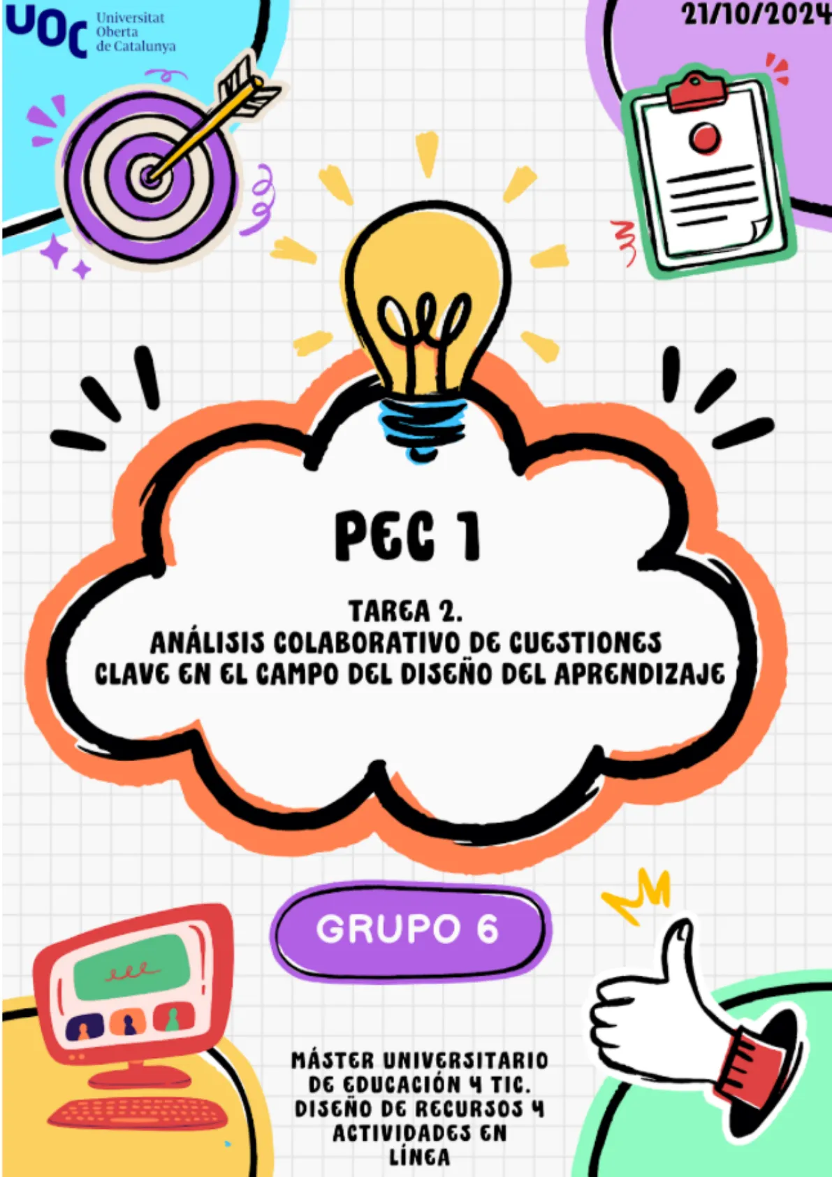 Documento de la Universitat Oberta de Catalunya sobre el análisis colaborativo de cuestiones clave en el diseño del aprendizaje. El Pdf explora el Diseño Universal del Aprendizaje (DUA) y el Diseño Instruccional, destacando la adaptación a las necesidades de los estudiantes y el impacto de la Web 2.0 en la creación de contenidos educativos universitarios.