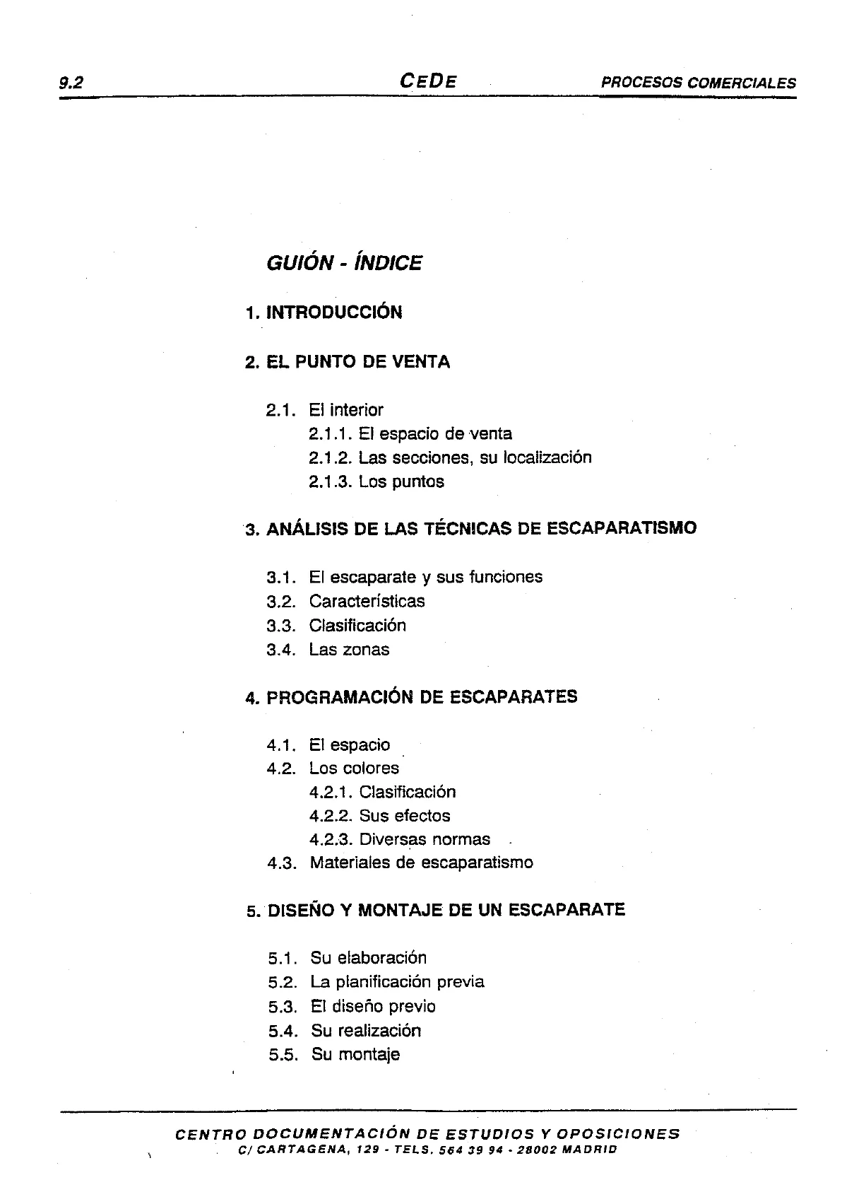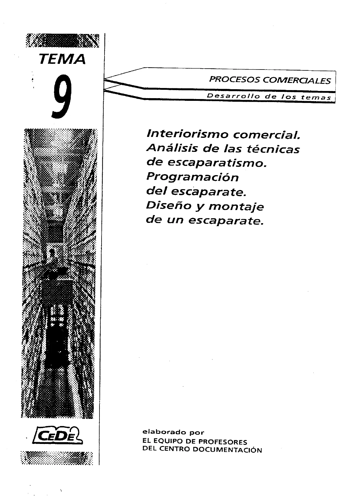 Documento de Cede sobre Procesos Comerciales. El Pdf, un material de Formación profesional, explora el interiorismo comercial, las técnicas de escaparatismo, la programación y el montaje de vitrinas, ofreciendo un índice detallado de los temas tratados.