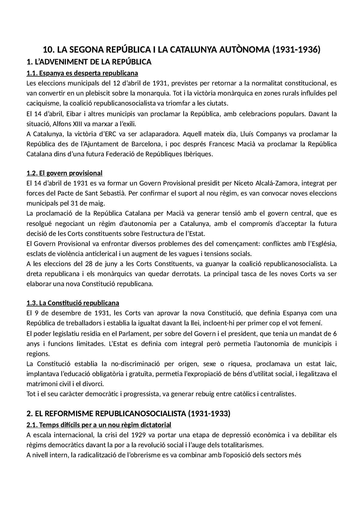 Documento de Bachillerato sobre la Segunda República y la Cataluña Autónoma (1931-1936). El Pdf, de Historia, explora el advenimiento de la República, las reformas republicano-socialistas y el periodo de rectificación conservadora, incluyendo eventos clave como las elecciones de 1931 y la Constitución republicana.