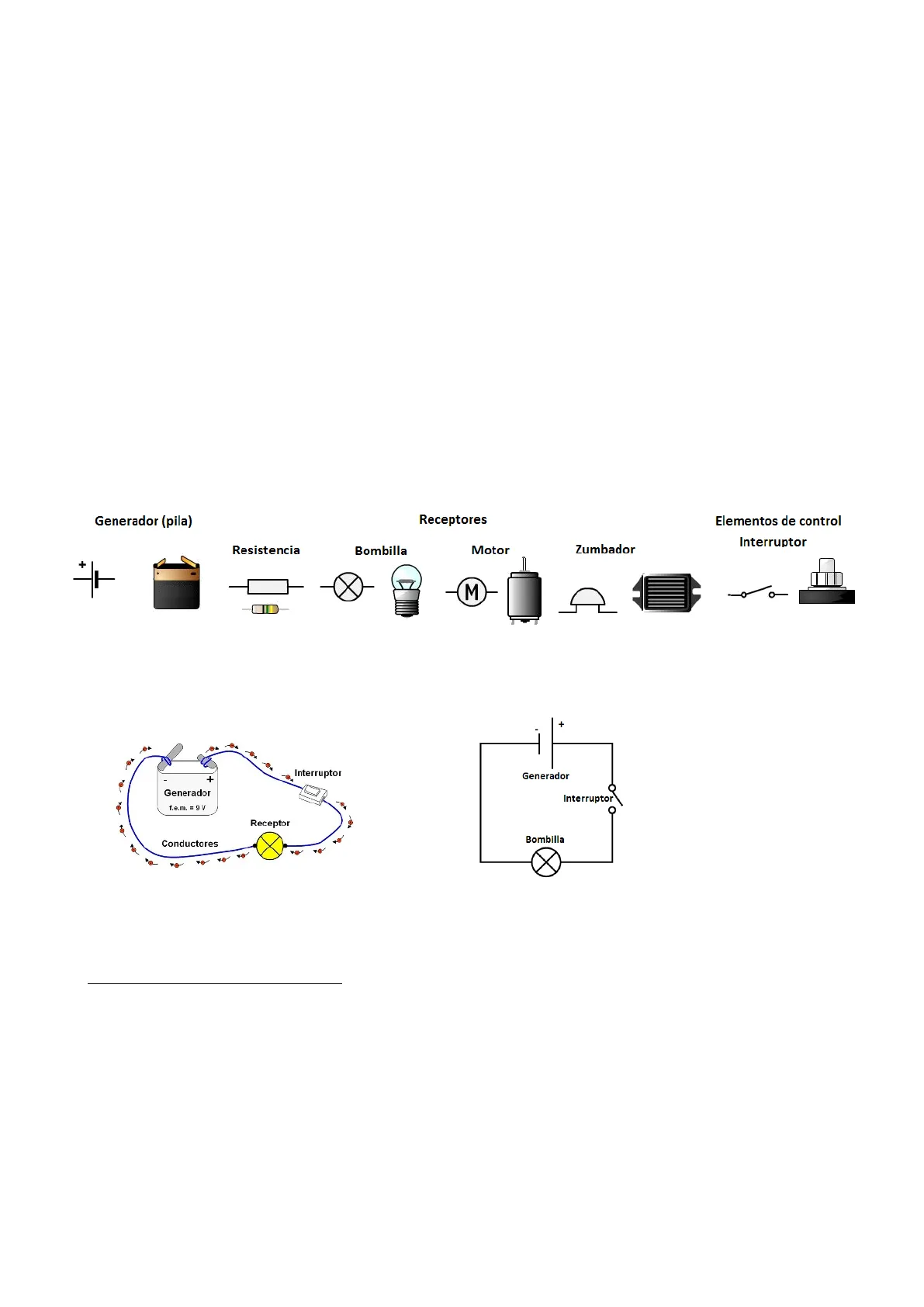 + Generador Generador Interruptor f.e.m. = 9 V O Receptor Bombilla Conductores