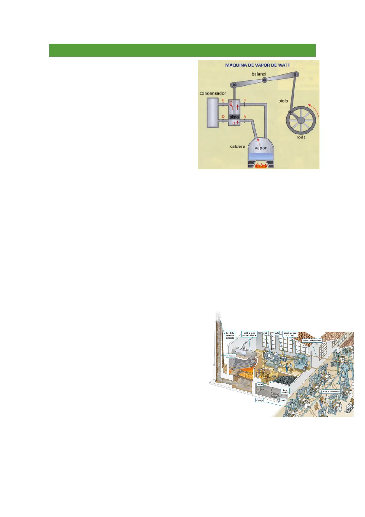 - Màquina de vapor: La màquina de vapor va ser perfeccionada per James Watt el 1769,