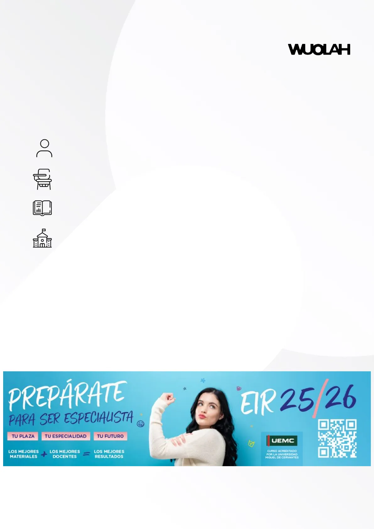 PREPÁRATE PARA SER ESPECIALISTA EIR 25/26 TU PLAZA TU ESPECIALIDAD TU FUTURO UEMC LOS MEJORES MATERIALES LOS MEJORES DOCENTES LOS MEJORES RESULTADOS CURSO ACREDITADO POR LA UNIVERSIDAD MIGUEL DE CERVANTES Reservados todos los derechos. No se permite la explotación económica ni la transformación de esta obra. Queda permitida la impresión en su totalidad.Importante Puedo eliminar la publi de este documento con 1 coin Plan Turbo: barato ¿Cómo consigo coins? Planes pro: más coins pierdo espacio Necesito concentración ali ali oooh esto con I coin me lo quito yo ...
