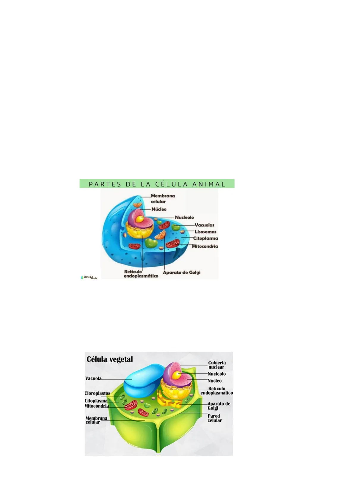 Membrana celular Núcleo Nucleolo Vacuolas Lisosomas Citoplasma Mitocondria Retículo endoplasmático Aparato de Golgi