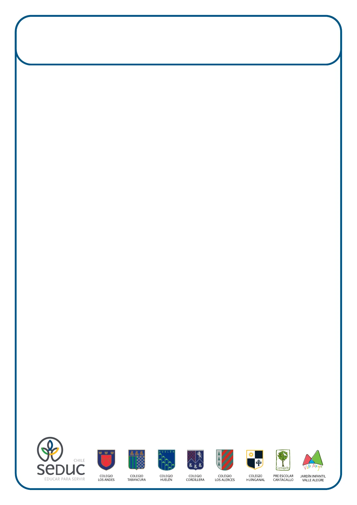 HUELEN CHILE seDuc EDUCAR PARA SERVIR COLEGIO LOS ANDES COLEGIO TABANCURA COLEGIO HUELEN COLEGIO CORDILLERA COLEGIO LOS ALERCES COLEGIO HUINGANAL Cantagallo Valle Alegre PRE ESCOLAR CANTAGALLO JARDÍN INFANTIL VALLE ALEGRE