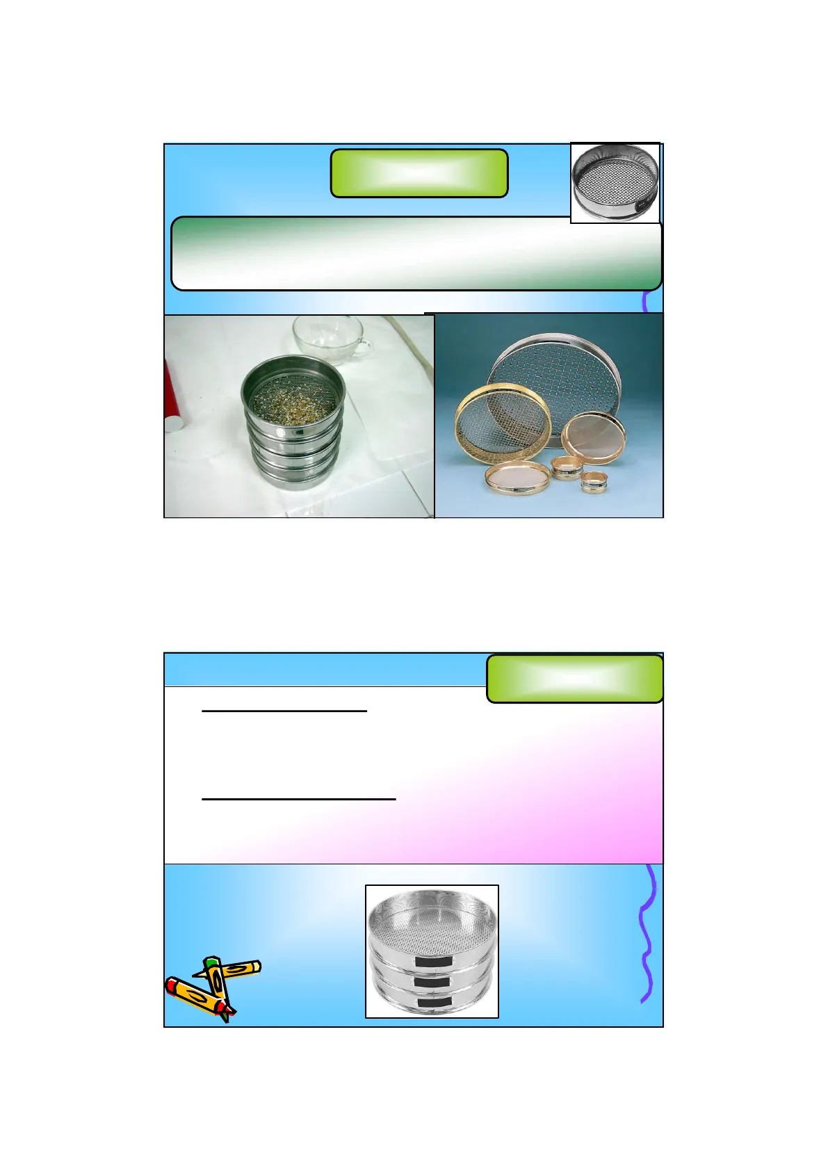- Existen tamices con diferentes tamaños de luz.