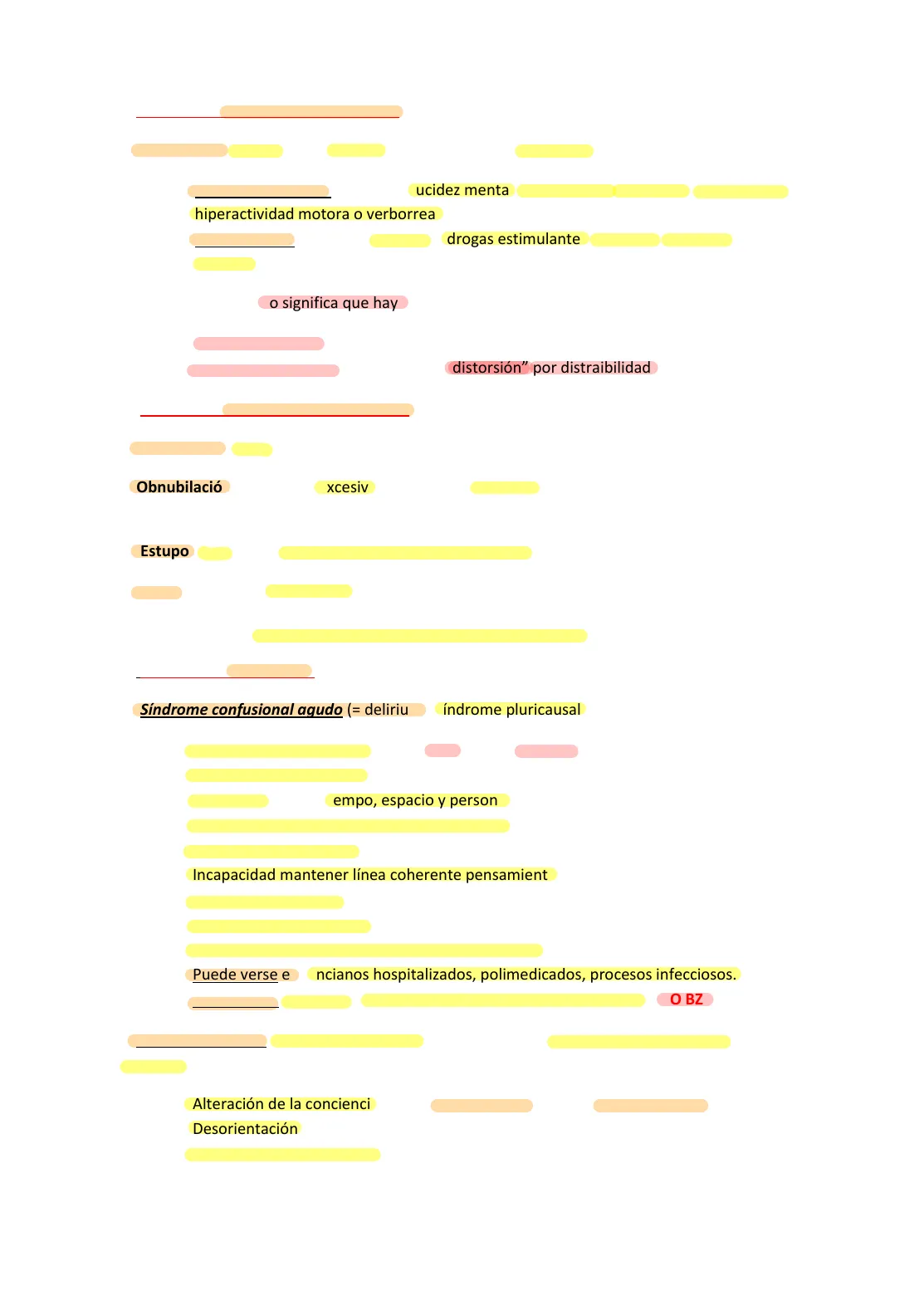 Síndrome confusional agudo (= delirium): síndrome pluricausal caracterizado por: